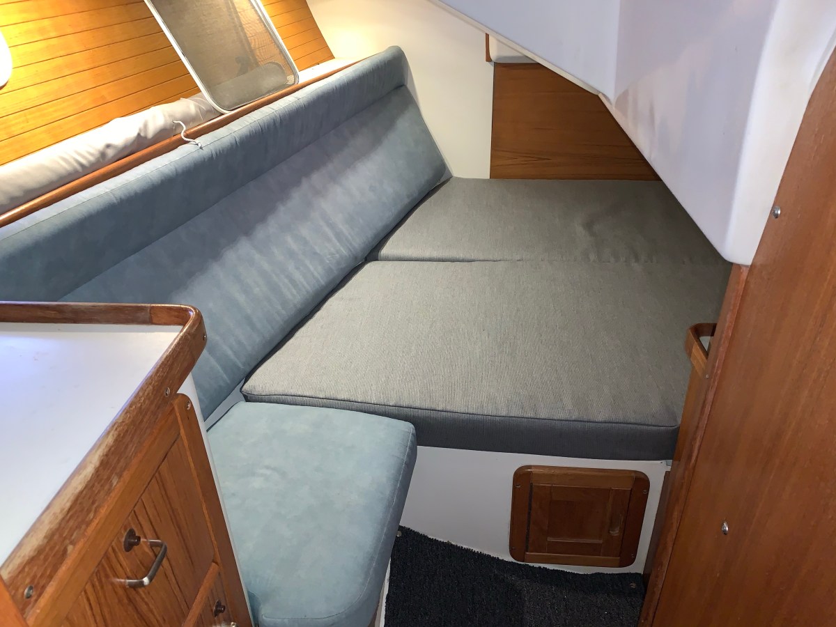 Earlier this week, Rachel finished 3 out of 4 of our boat cushions. They turned out really great. Here’s what they look like installed on the boat: