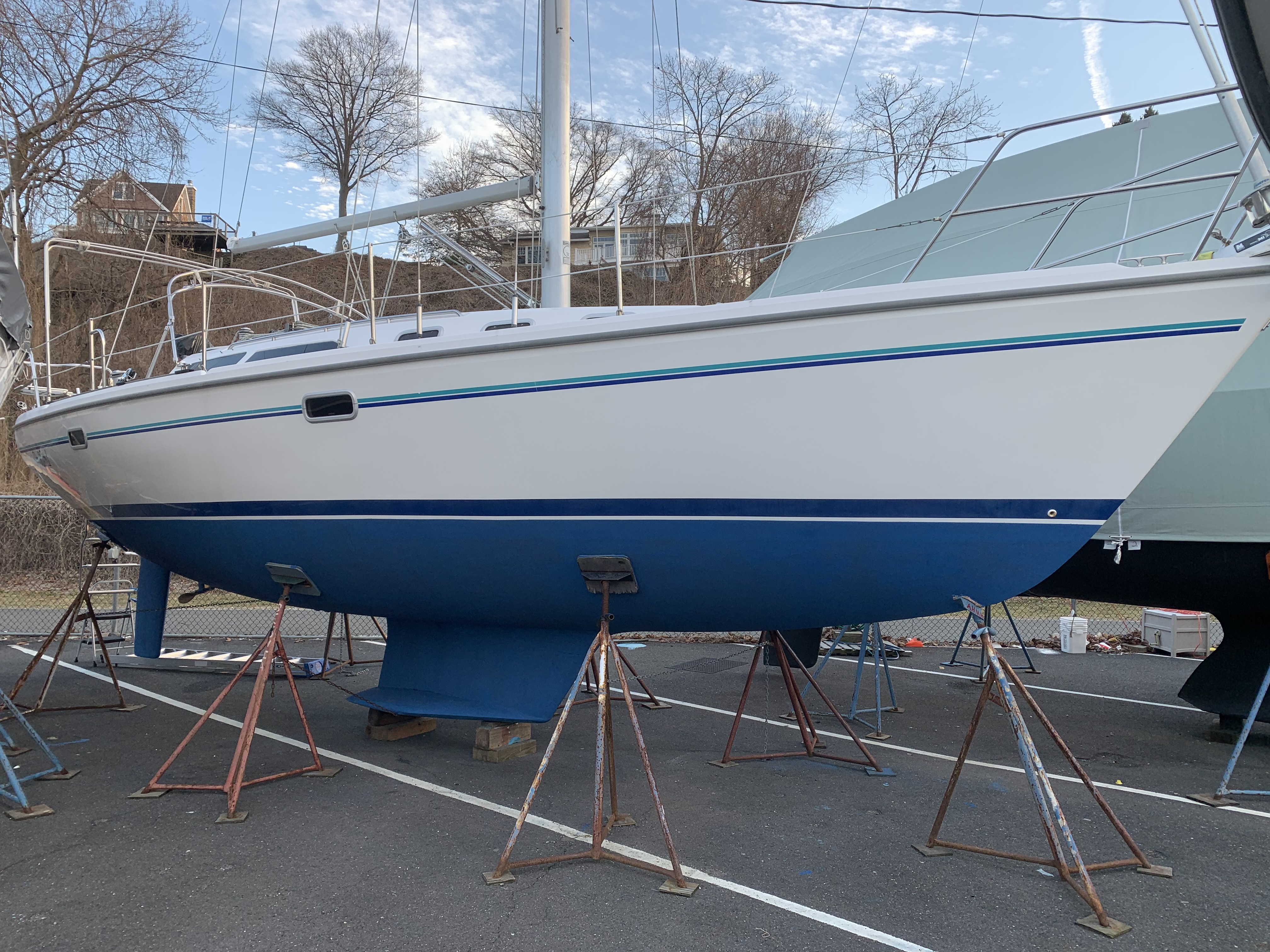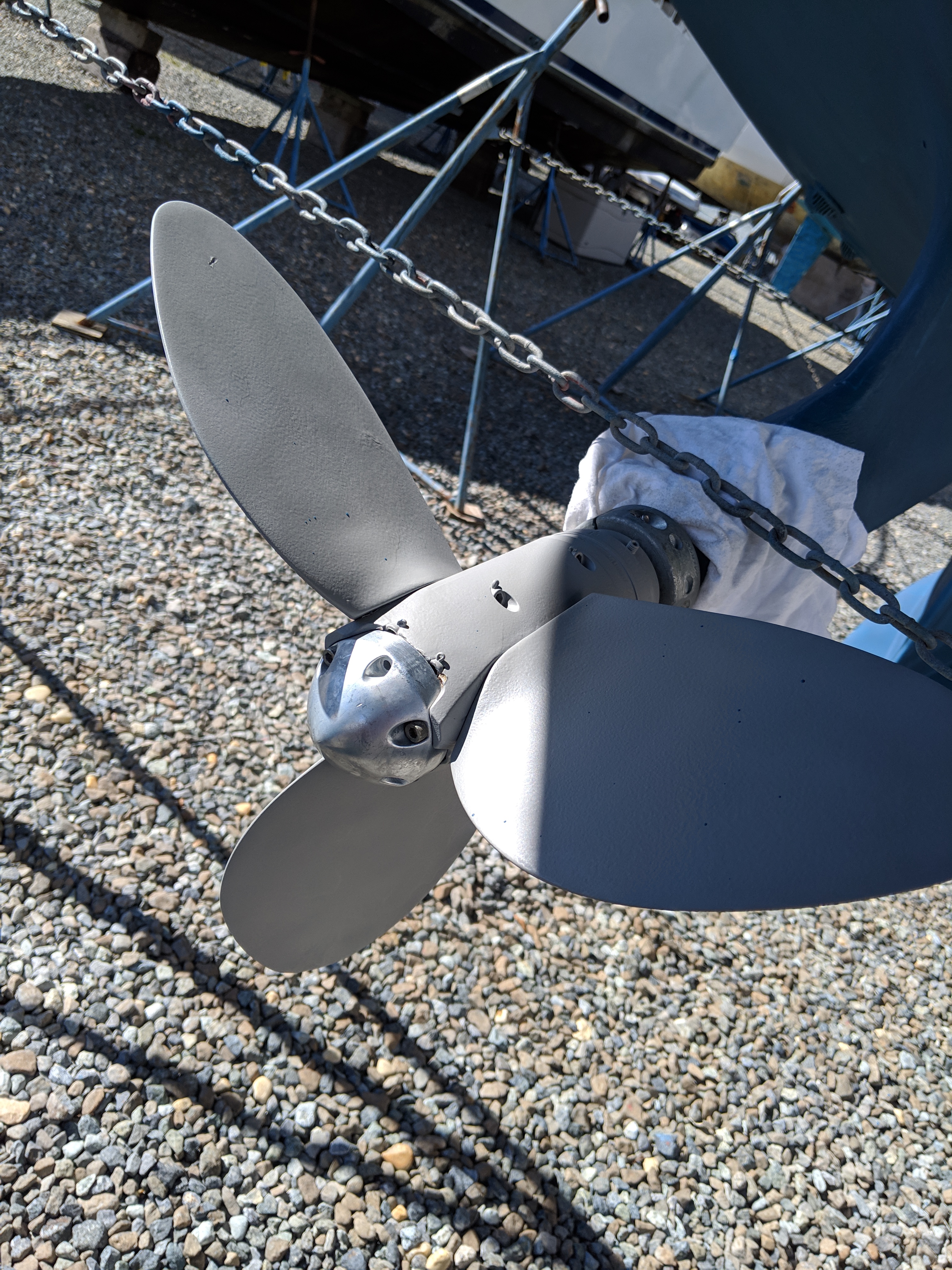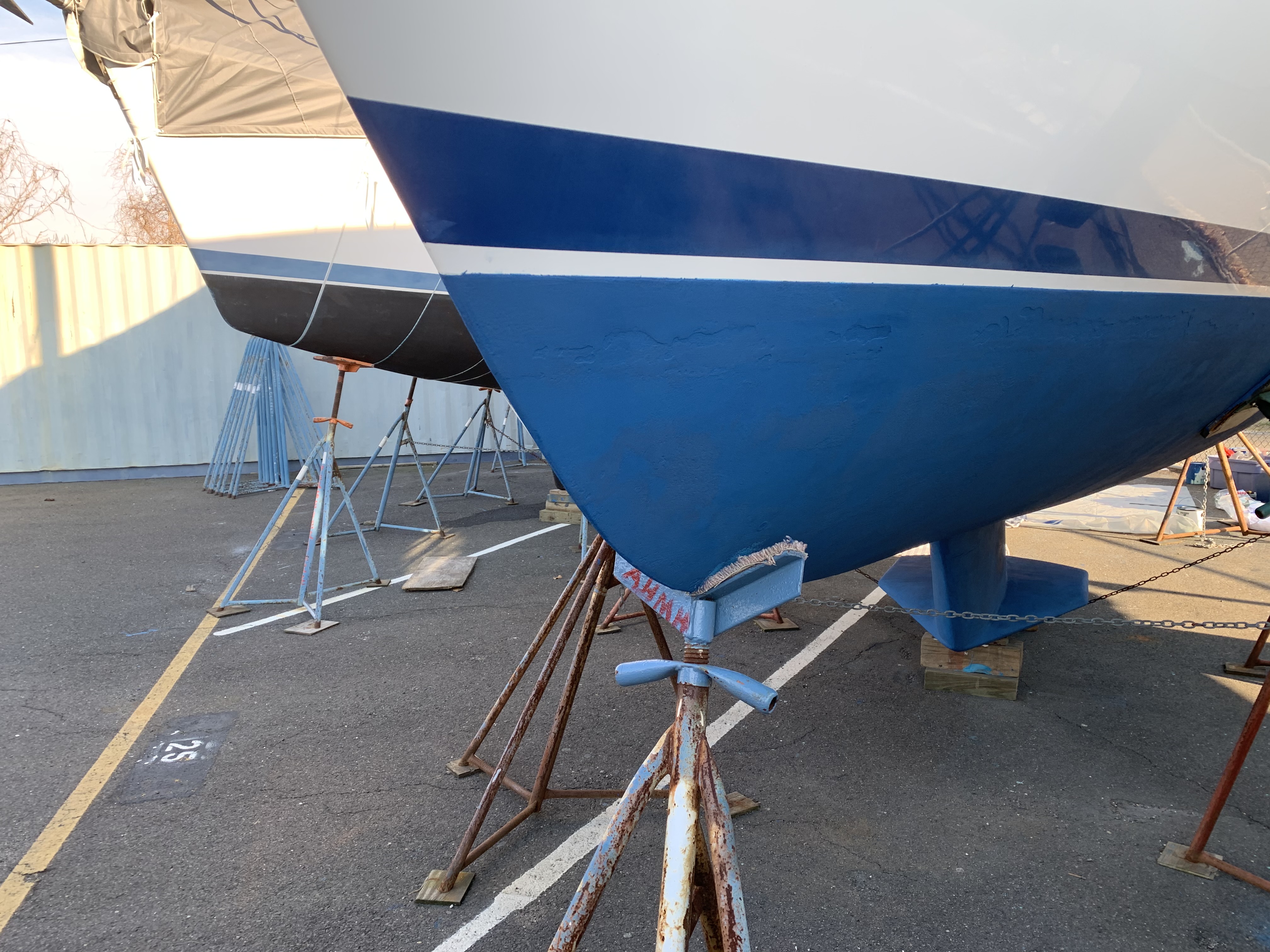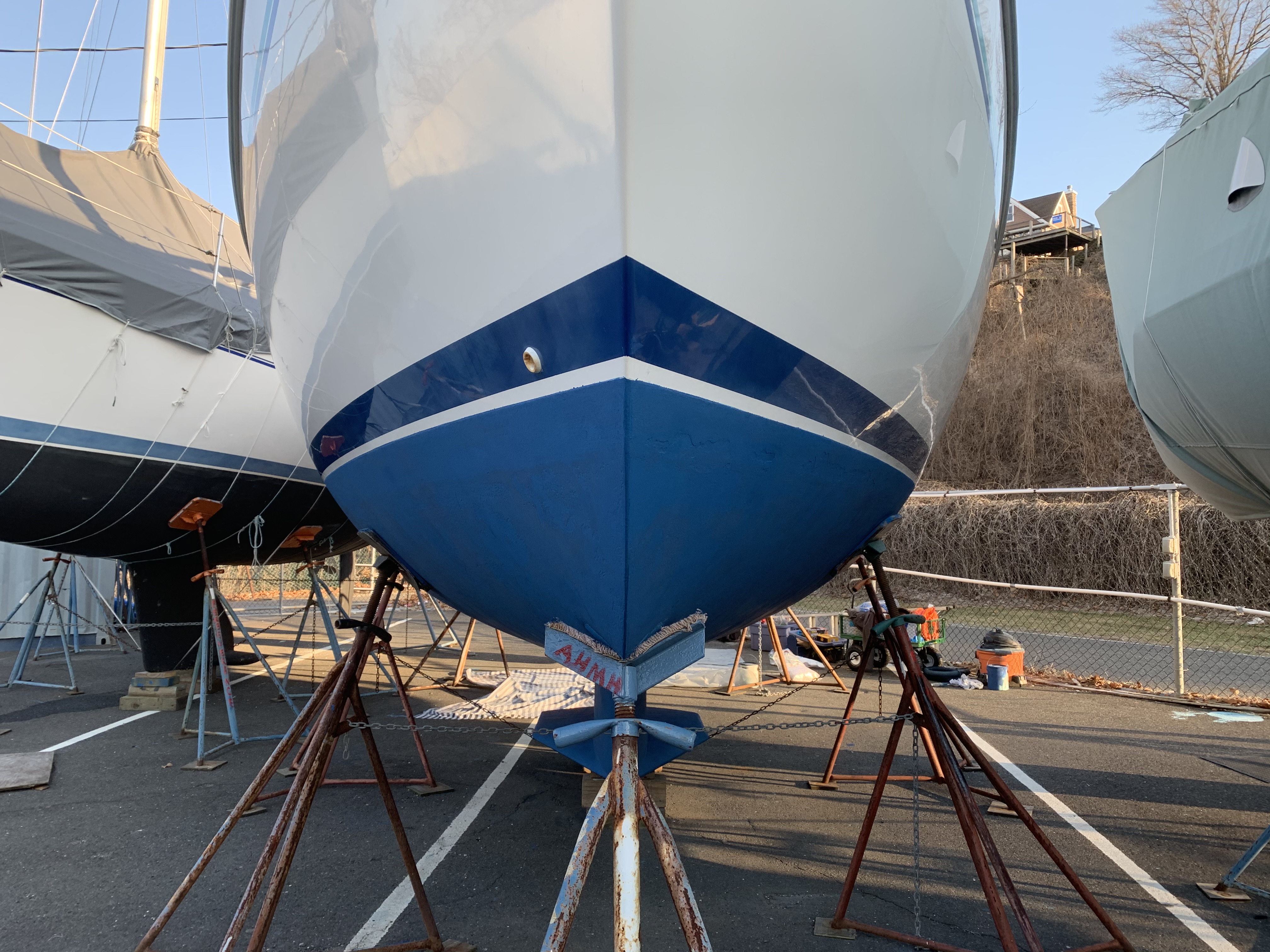 Meanwhile, I have been working hard to get Skyward ready for the season. It is for sale, but we just sold it! Here you see the new bottom paint after a light sanding.