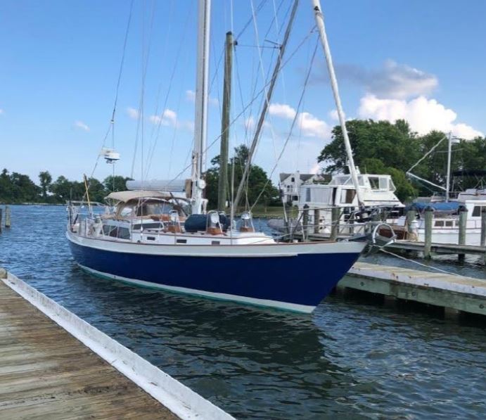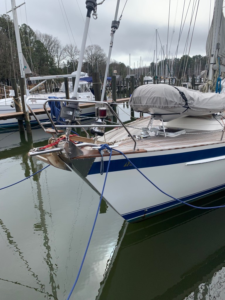 It is a 1987 Able Custom 50. Stunning. Georgous. Elegant lines. Extremely well-manicured. This boat had: B&G instruments, massive electric winches, cutter design, jaw-dropping Awl grip gloss, deep cockpit, davits, and the list goes on and on. I didn’t want to like this boat, but you have to understand, I couldn’t help but love it. Thought it was a long ways away on Solomon’s Island.