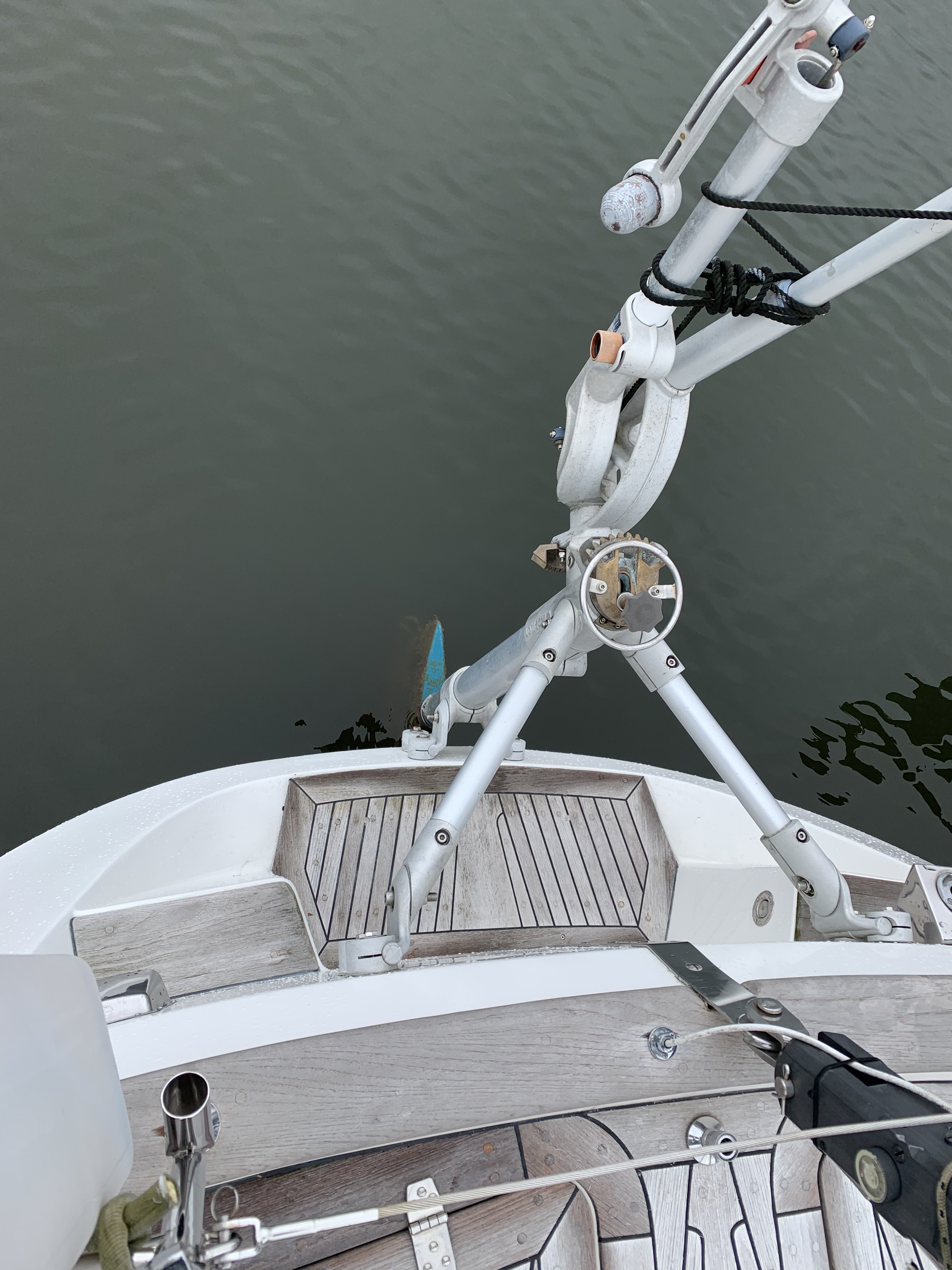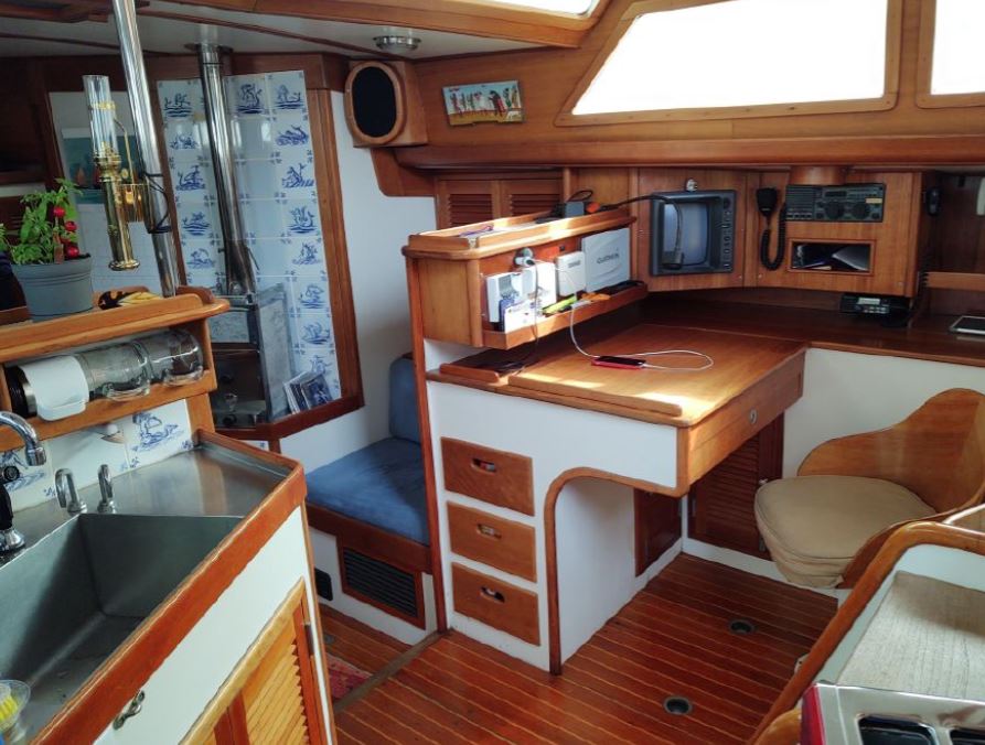 Ultimately, I didn’t like the raised deck windows. They seemed to let a lot of light in witout any curtains or shading which we would have had to add ourvselves. This boat had a lot of varnished teak on the deck which obviously required an immense amount of time to keep up with. We don’t have time for that. The interior was the main decision factor against this boat despite my concerns about the sail design. Not being able to sleep together in the aft cabin and the v-berth was a little short in length.