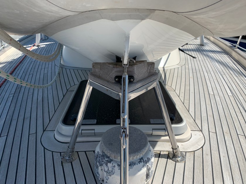 We are going to have to keep an eye on the standing rigging coming down from the upper spreader to the lower spreader. It looks like there may be some corrosion at the connection.