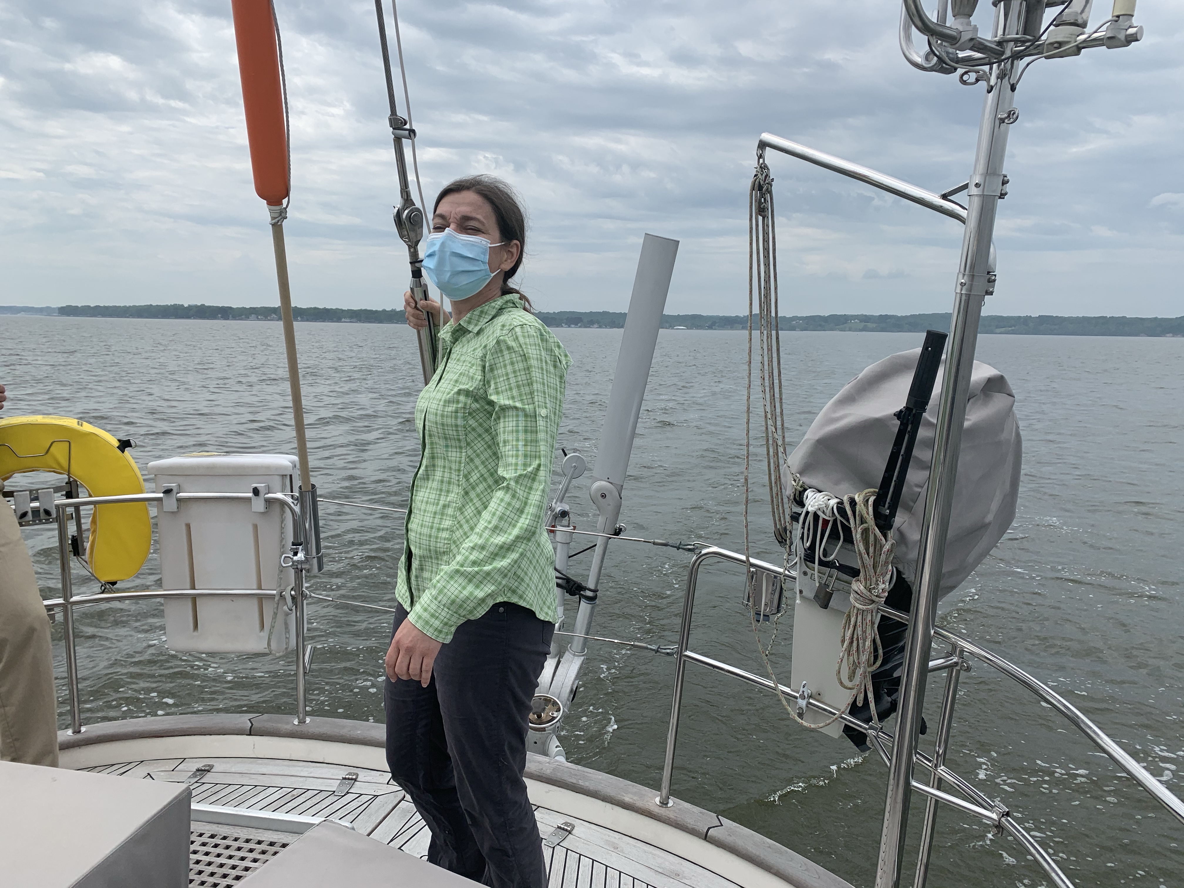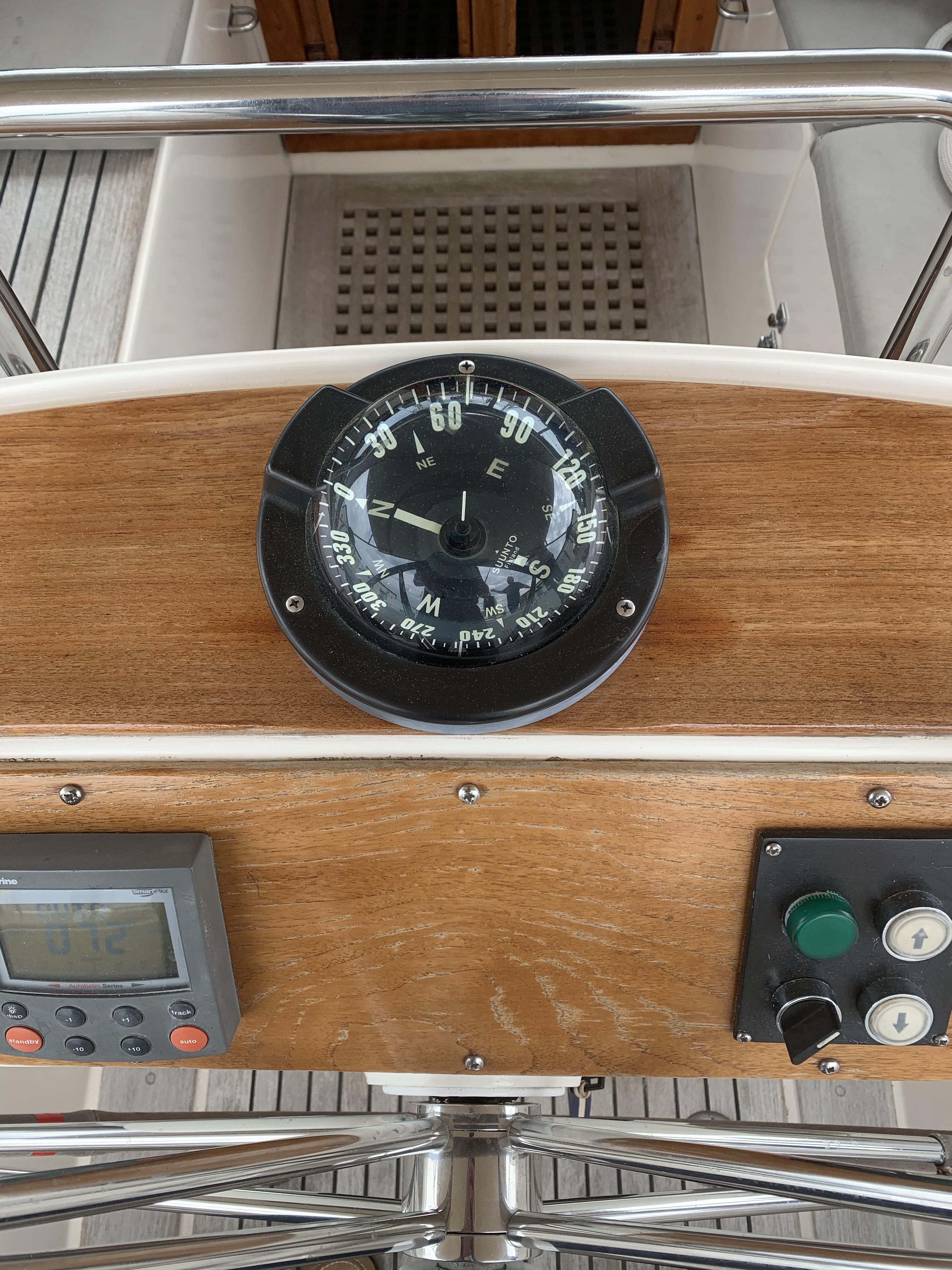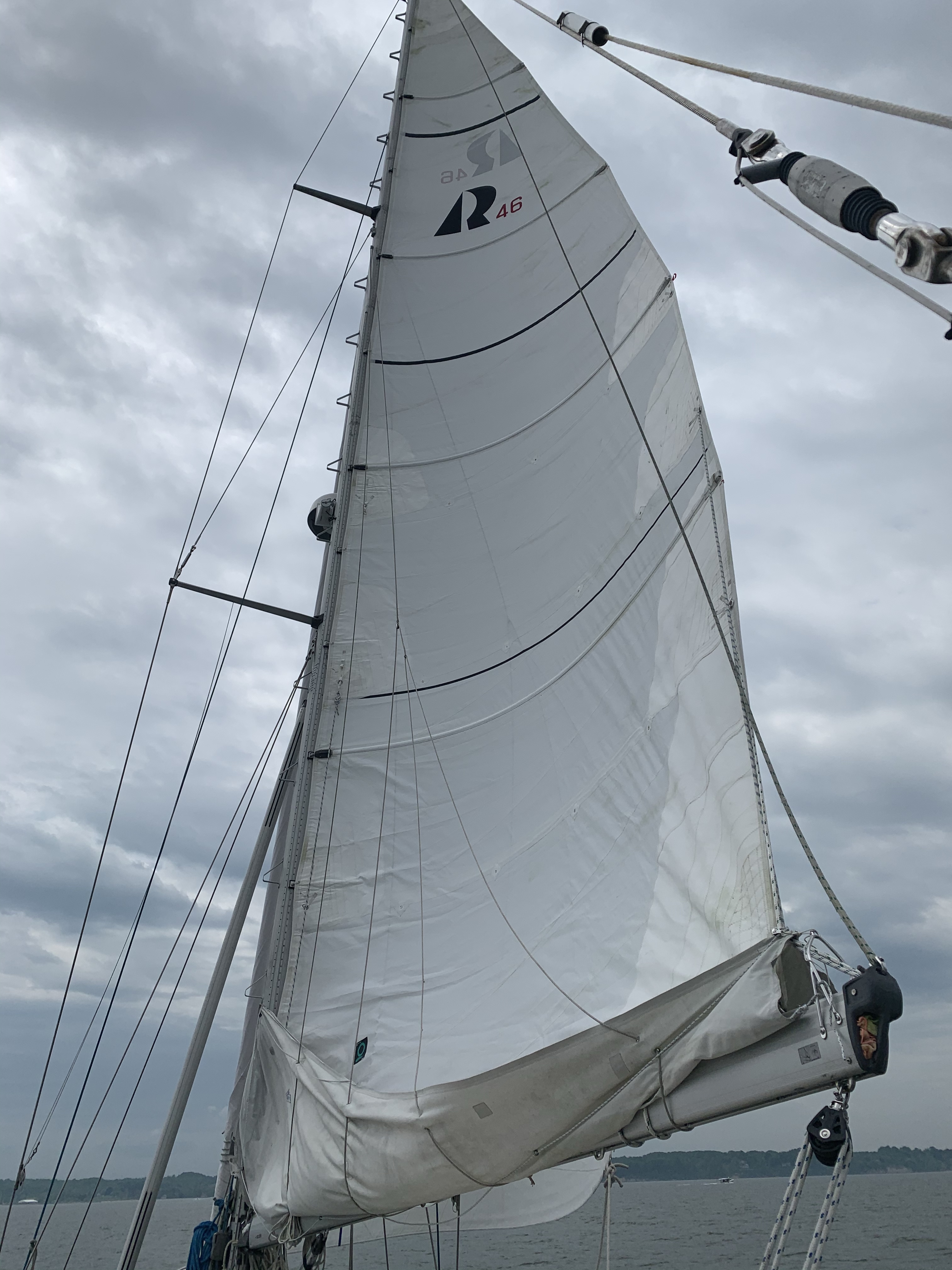 The sea trial for the HR46 went well. The weather was a bit unpredictable in that it hovered from short sleeve weather to light rain and cool weather. This caused us to put up the Bimini. I couldn’t move around the boat easily with the Bimini being up, so that was truly the only downside. That and the fact that the dinghy is current stowed on deck, so you only have 1 square foot to see out ahead! Not the best set up for the Chesapeake with crab and fishing pots sprinkling the waterway.