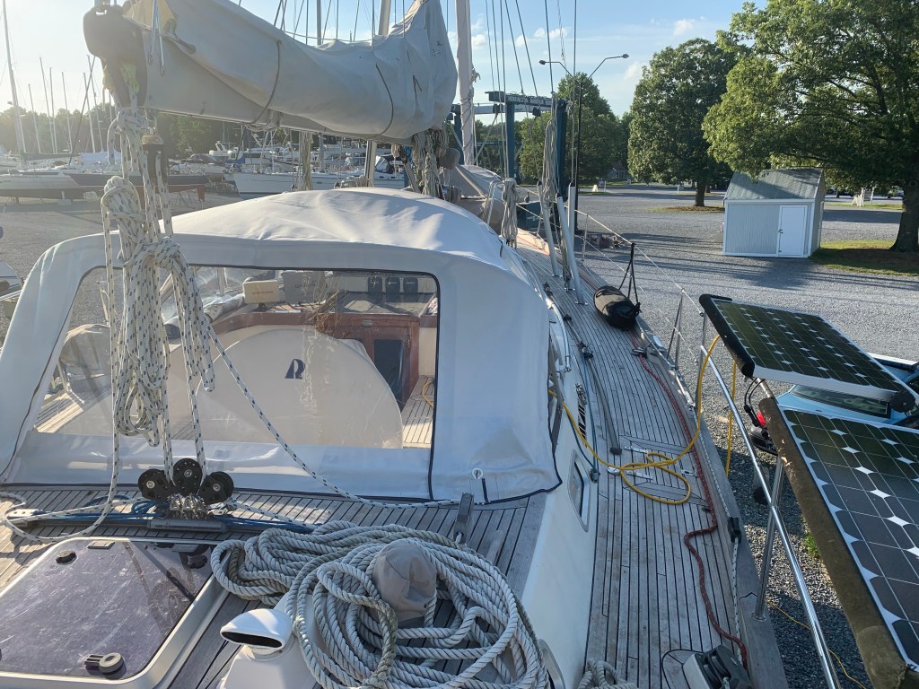 One of the last items to get completed was the installation of our sprayhood extension. This will be nice in the cooler months. Thanks to Christine at Canvas Connection, this was excellent work, done on time as requested and with very little notice. (We’ll come back to this sprayhood extension in a future blog.)