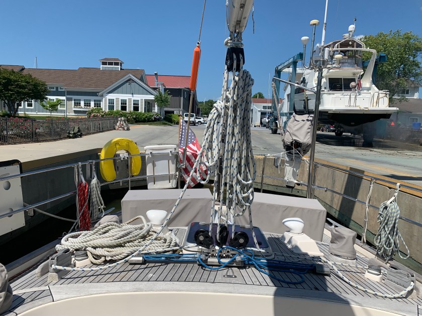 One more thing had to happen before we could launch. Wouldn’t you know it. We had a nest in our mainsail, and a couple of baby birds had taken up residence in it. Watch the video (link below) to see more of this.