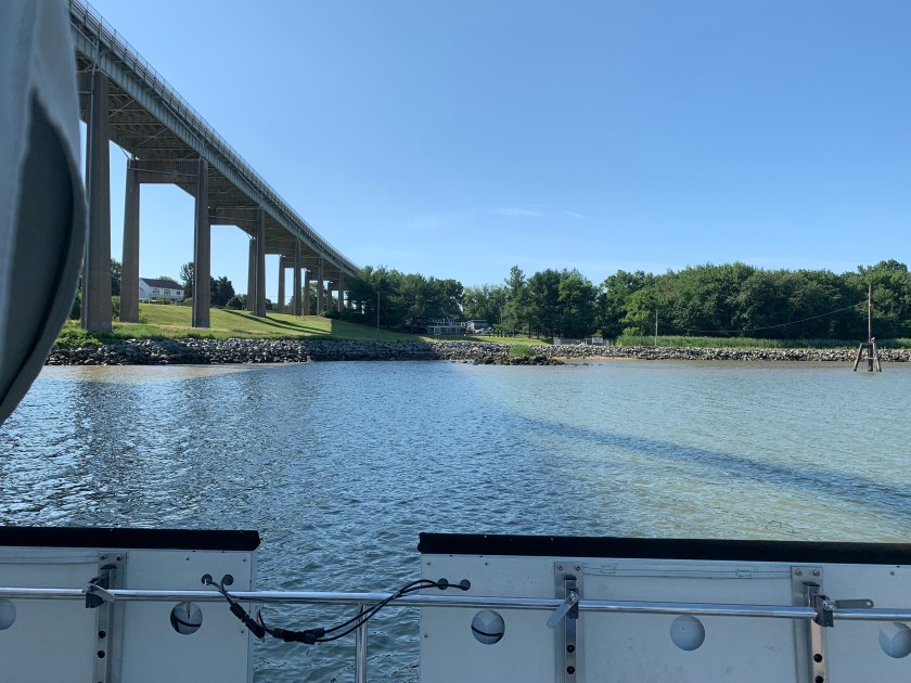And so we embark on a 256.4 nm journey, one which many sailors and mariners make every day. For us it will be a new experience; yes, we are about to do this. We plan to sail from Deale, MD to Betterton, MD where Glen from Cloudy Bay suggested we anchor on our 1st night. The next day will be nonstop from Betterton, MD after we pull up anchor until we put the boat on the mooring at Atlantic Highlanbds, NJ. On the way to Betterton, we passed the Chesapeake Bay Bridge and were all amazed at 1) how much water exists North of the bridge and 2) the beautiful homes along the East and West shores.