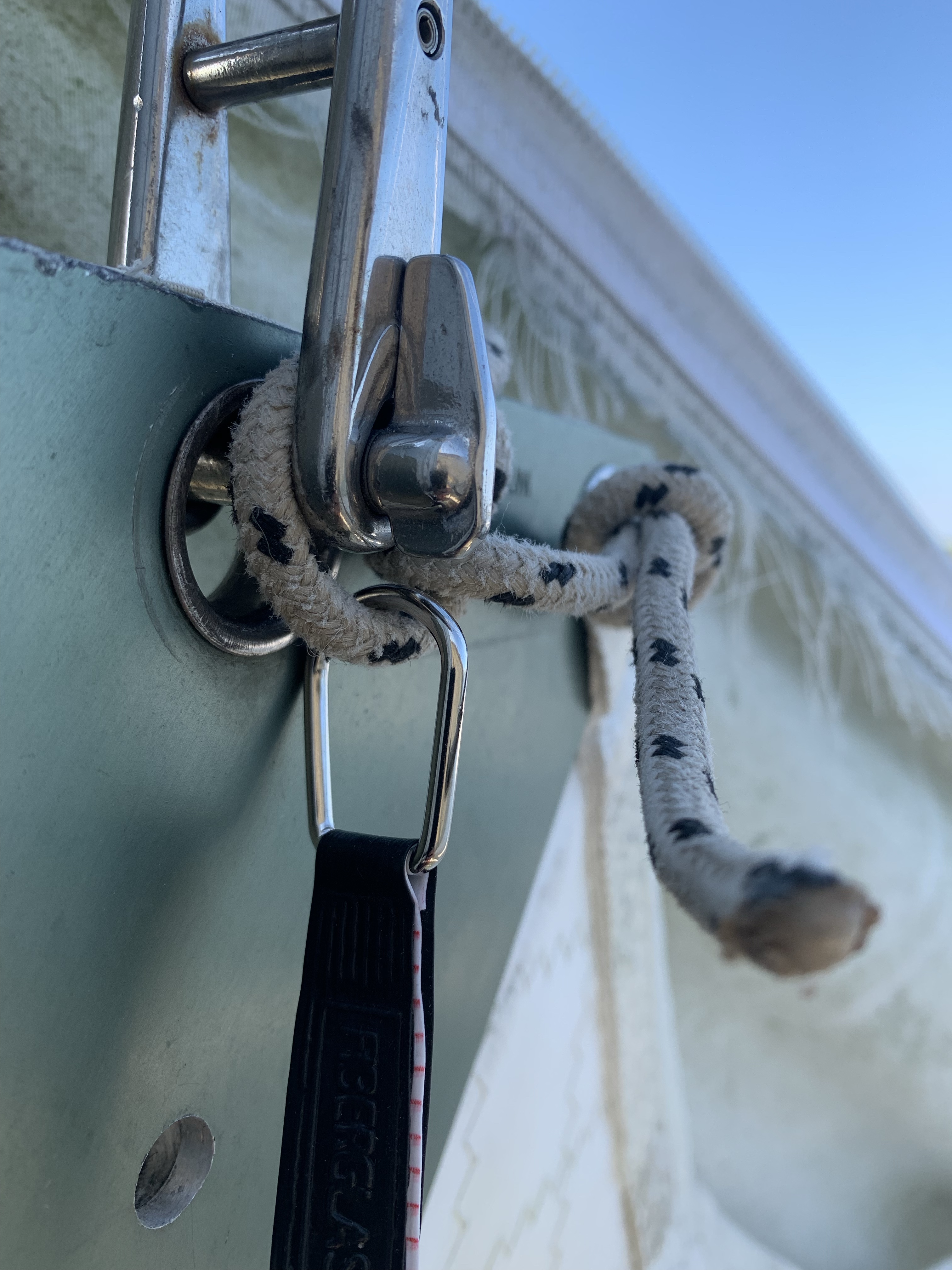 - Fixed the broken traveler car – Our traveler is no longer made by Lewmar. We had Ray make up a custom piece for us.