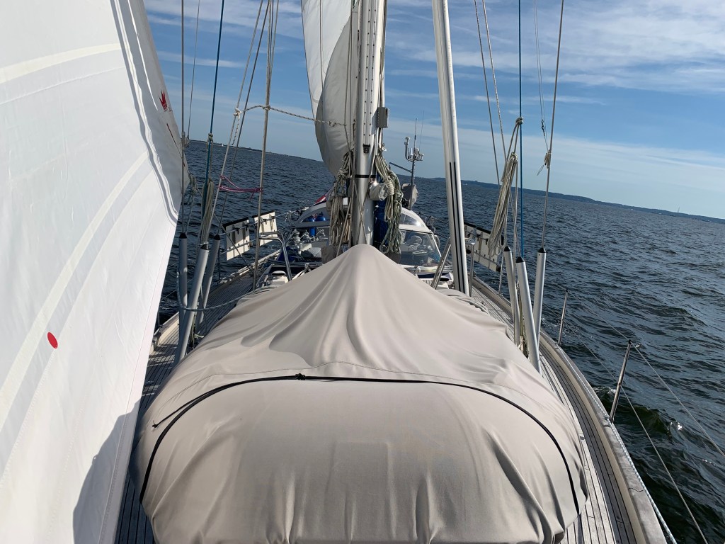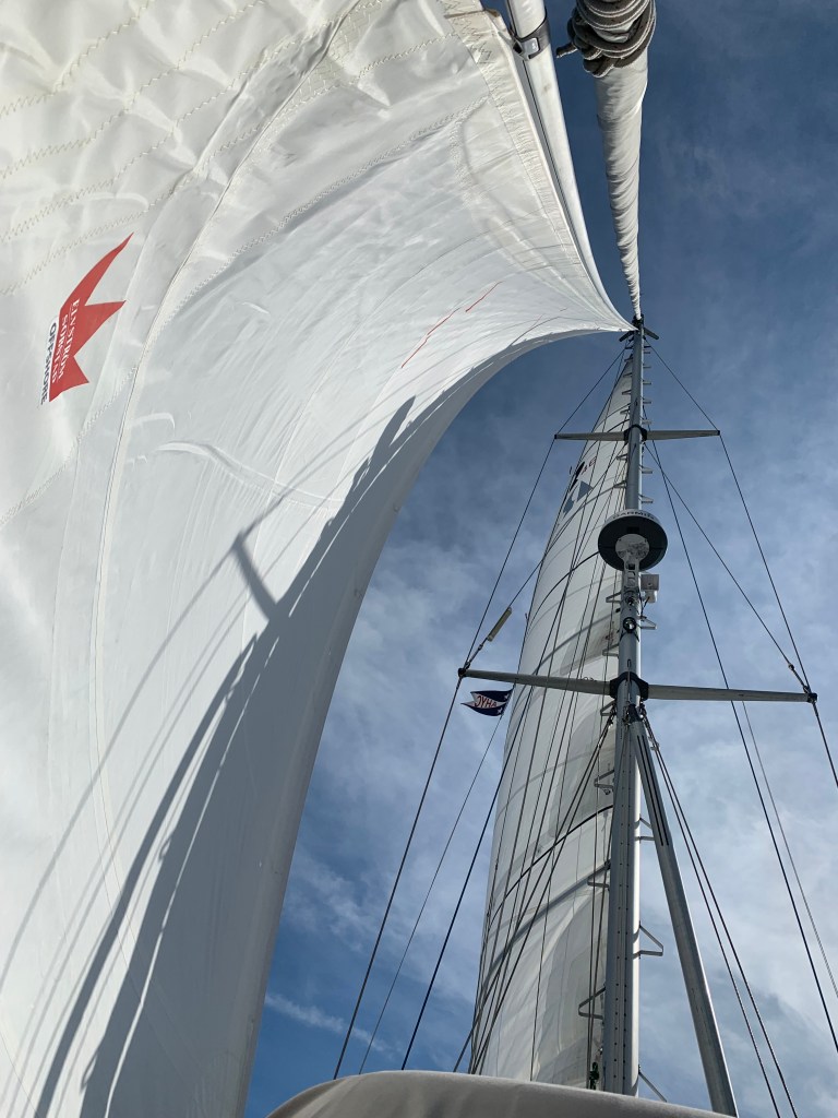 I love looking at the Elvstrom jib. It is one of the prettiest sails that we have, and it’s shape is striking on when unfurled and in use. I go all the way to the foredeck and stare at it. Up and down in a way that might cause me to be labeled a “creep”. Stunning pee-pole, simply stunning.