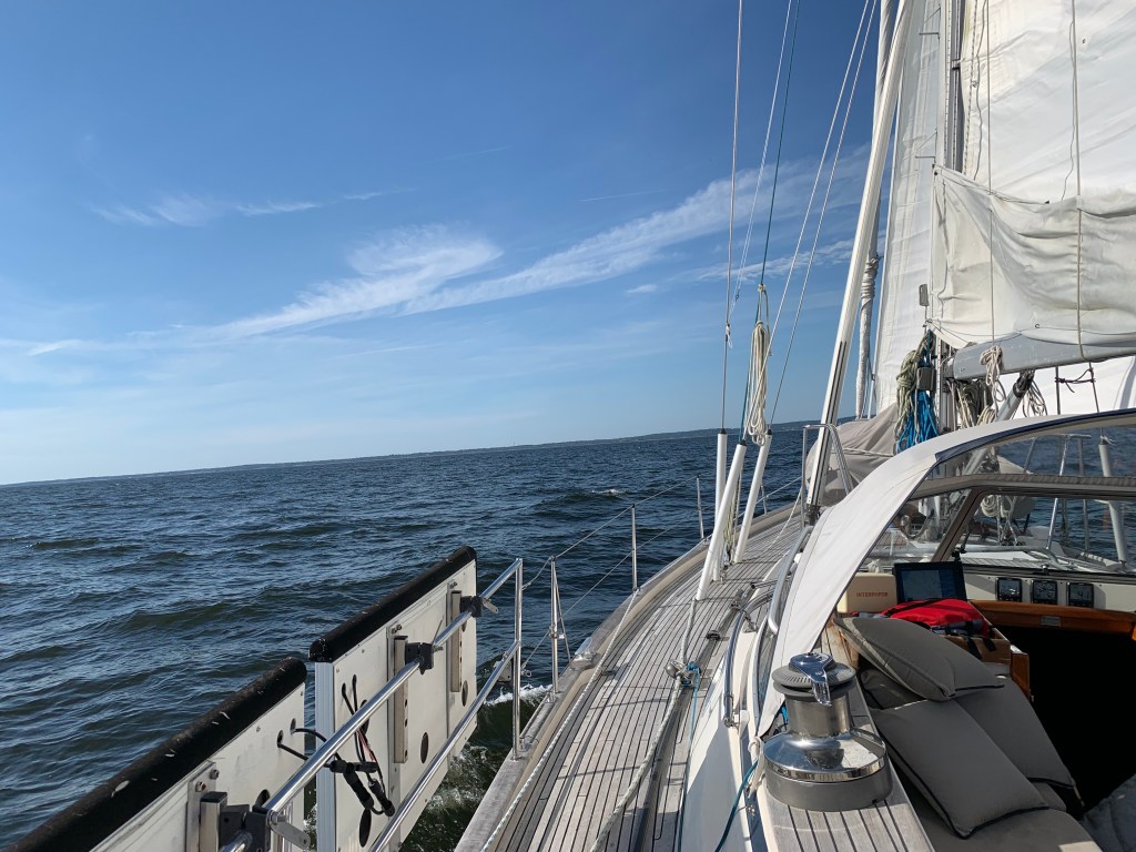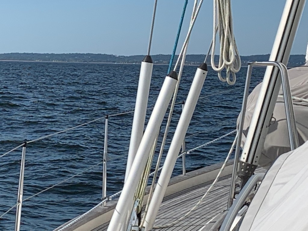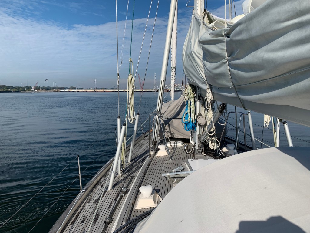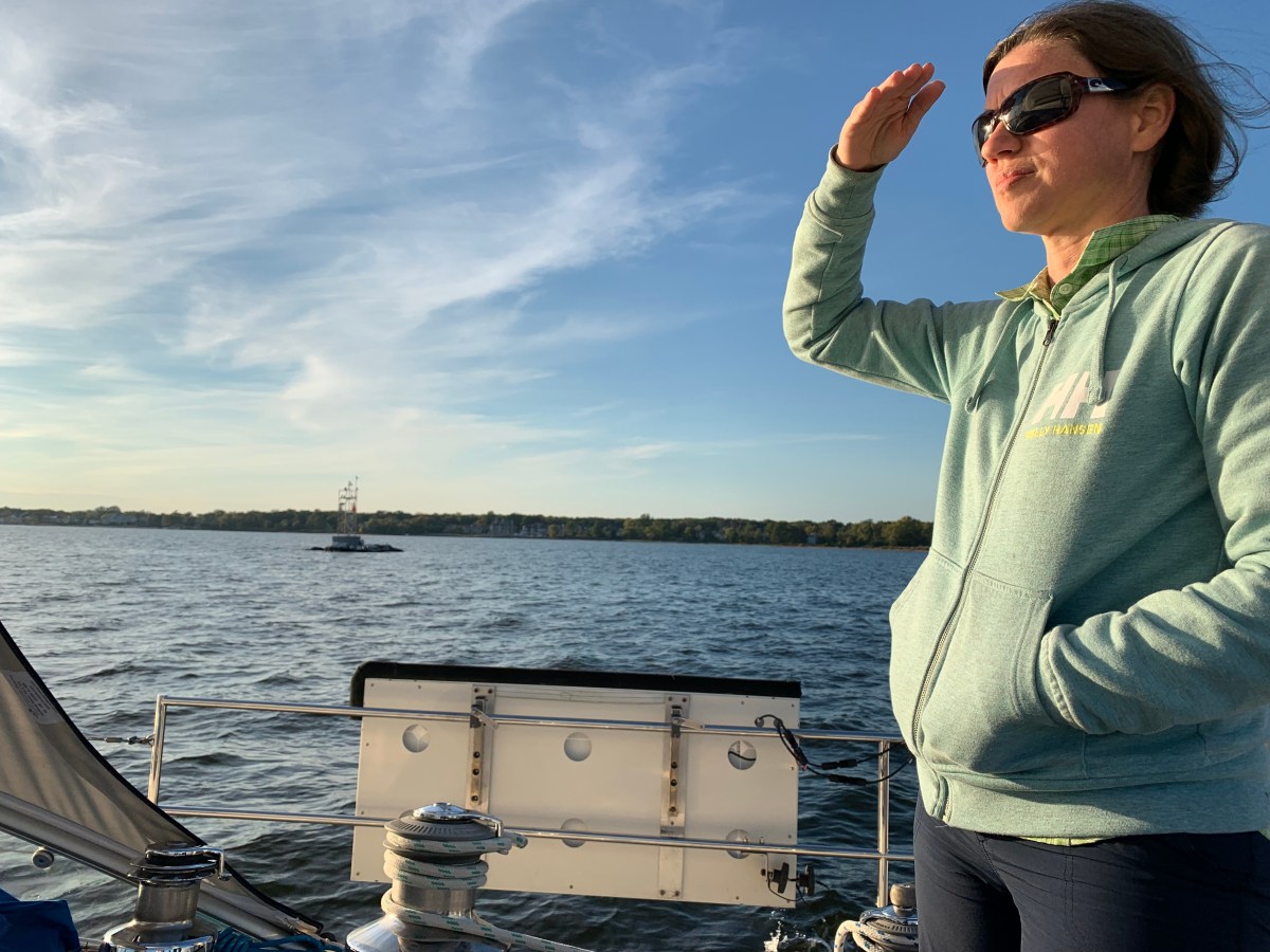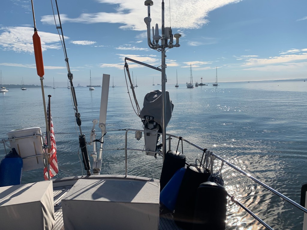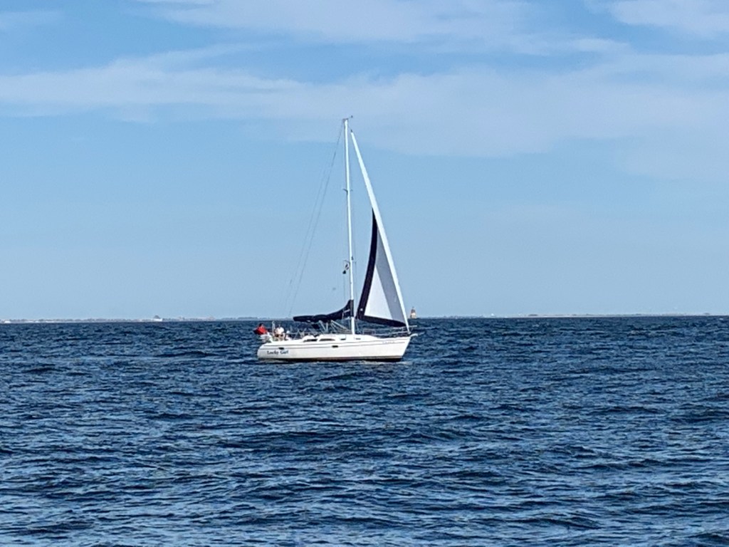 Once the fog lifted, we set a course to bee-line back to Atlantic Highlands. Nothing out of the ordinary, except — NO WIND! It was warmer, but that didn’t stop our Admiral from once again collecting data and information about the surroundings. I kept the motor running and sails flogging the whole way.