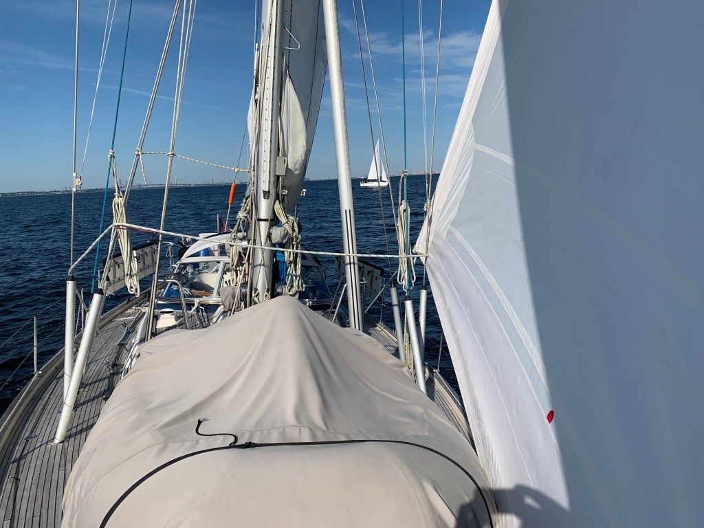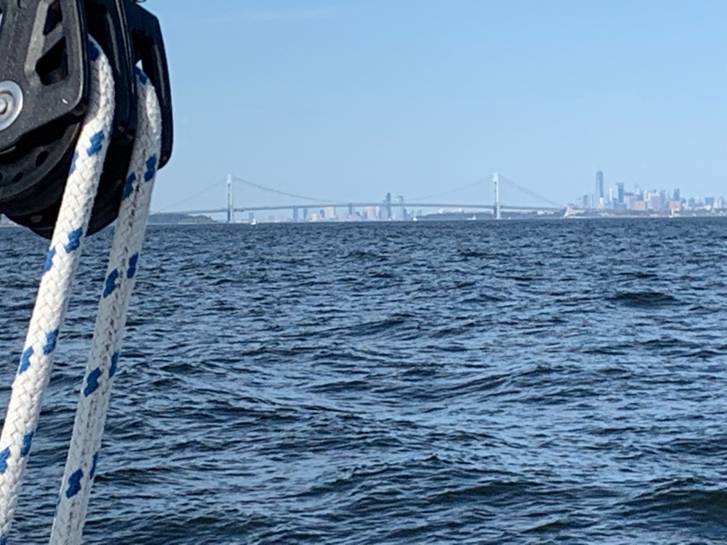 We did a short tango with another sailboat on deciding when to tack. They followed us out of Atlantic Highlands area and we both kept tacking back-and-forth all the way out to Staten Island. It was only a matter of time before one of us pinched the other out of space.