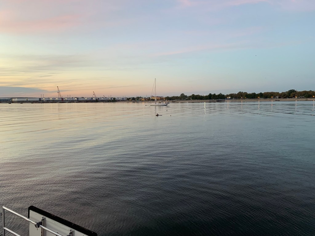 Once we landed here, the launch captain assigned us a mooring and helped to show us the way out to it. It was a long way in, 2nd in line to the railroad bridge which offered almost unobstructed views of the sunset.