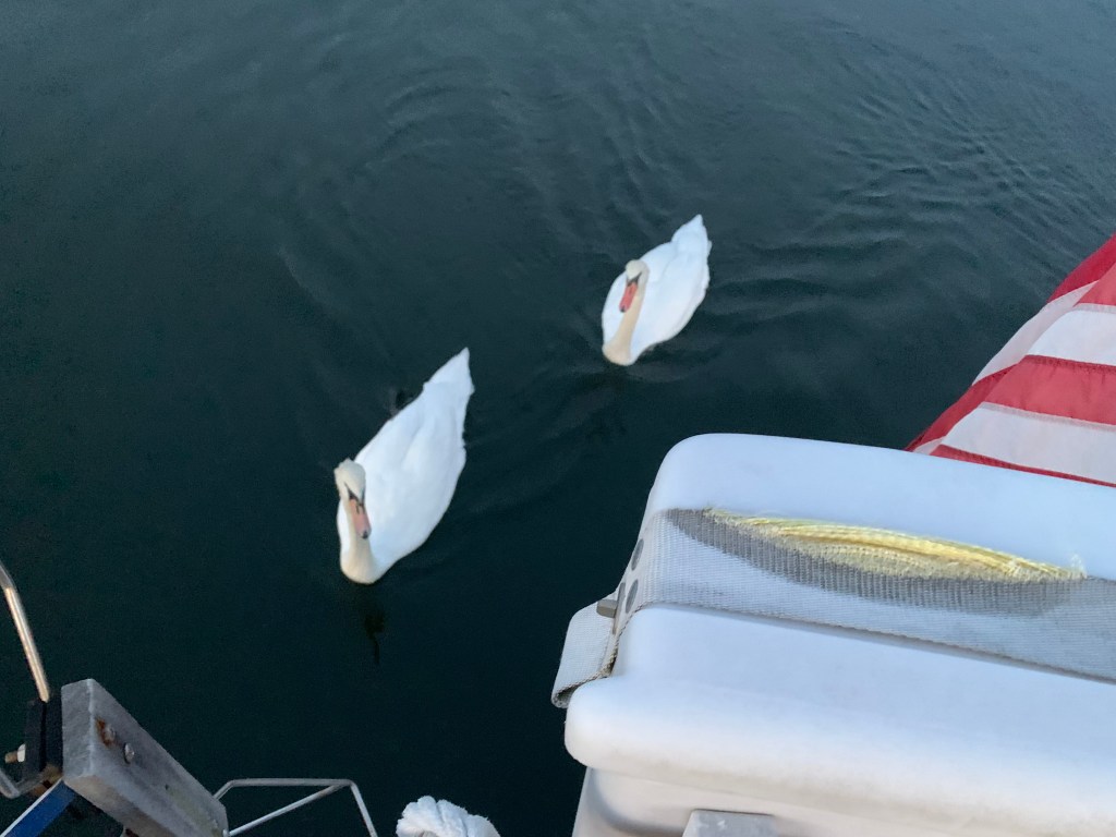 We fired up the barbeque and had some chicken. A couple of swans came over to visit with us before we turned down the lights for a peaceful night of rest.