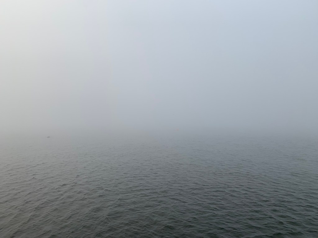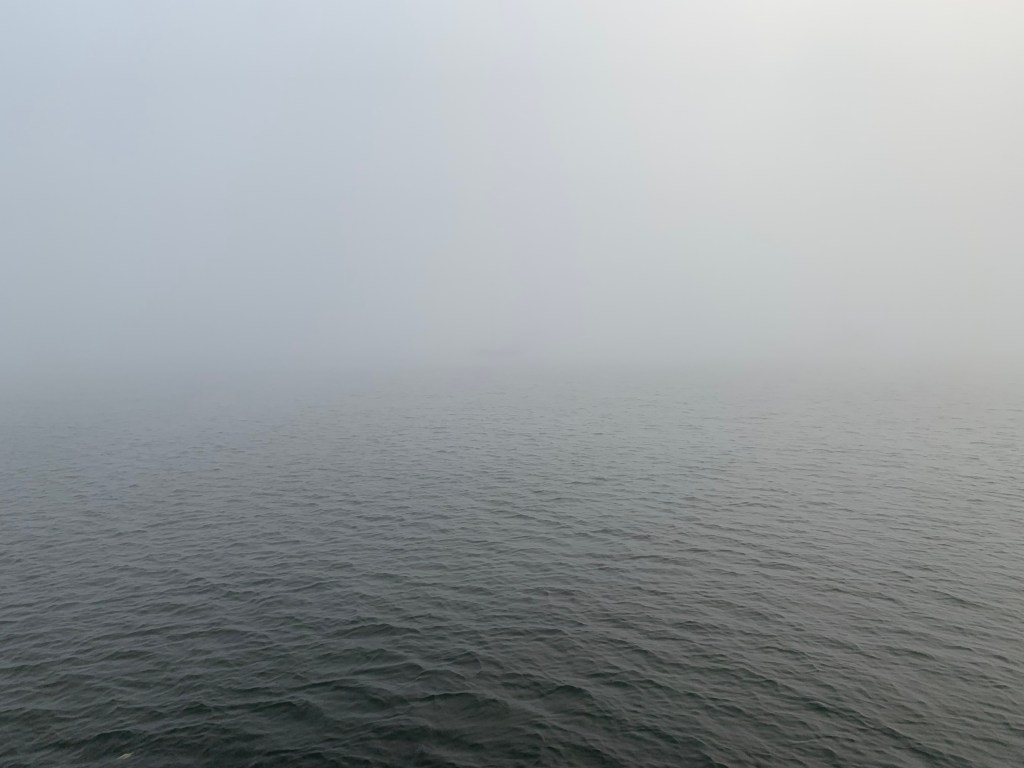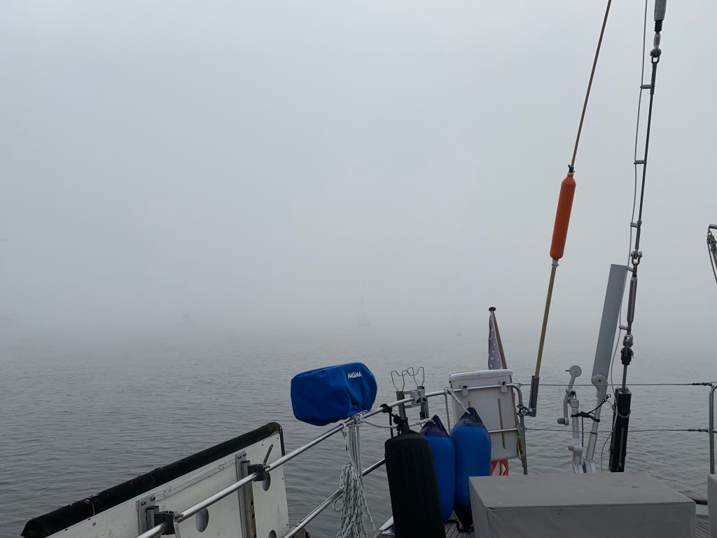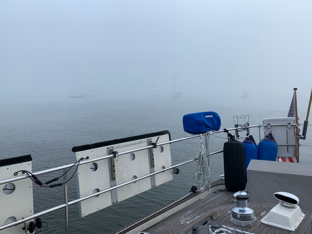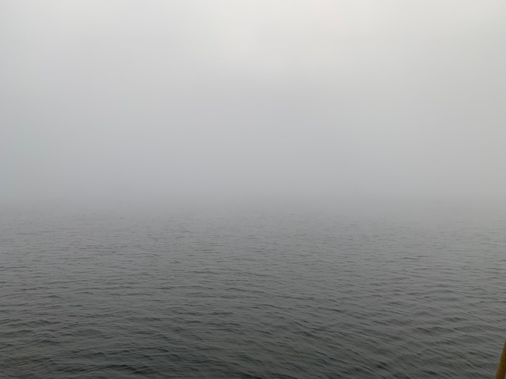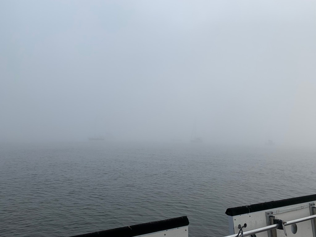 We got fogged in! The next morning before leaving Raritan, we were astounded by the feeling of being fogged in. I’ve never experienced this before. It felt like we were all alone and no one could see us; which was probably true. We didn’t expect to have this happen in the morning where we couldn’t see anything around us. We wanted to wait until the fog lifted until to leave to ensure our safety.