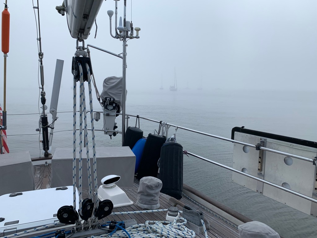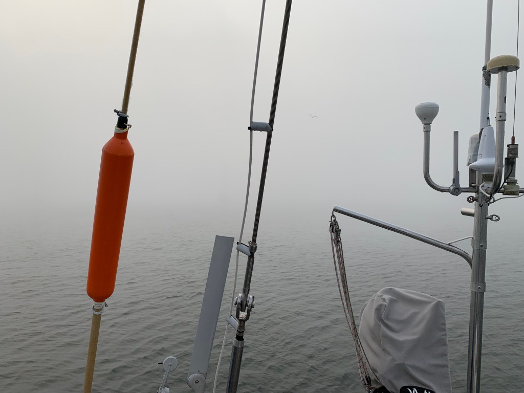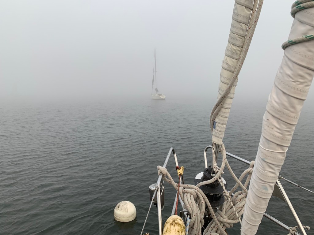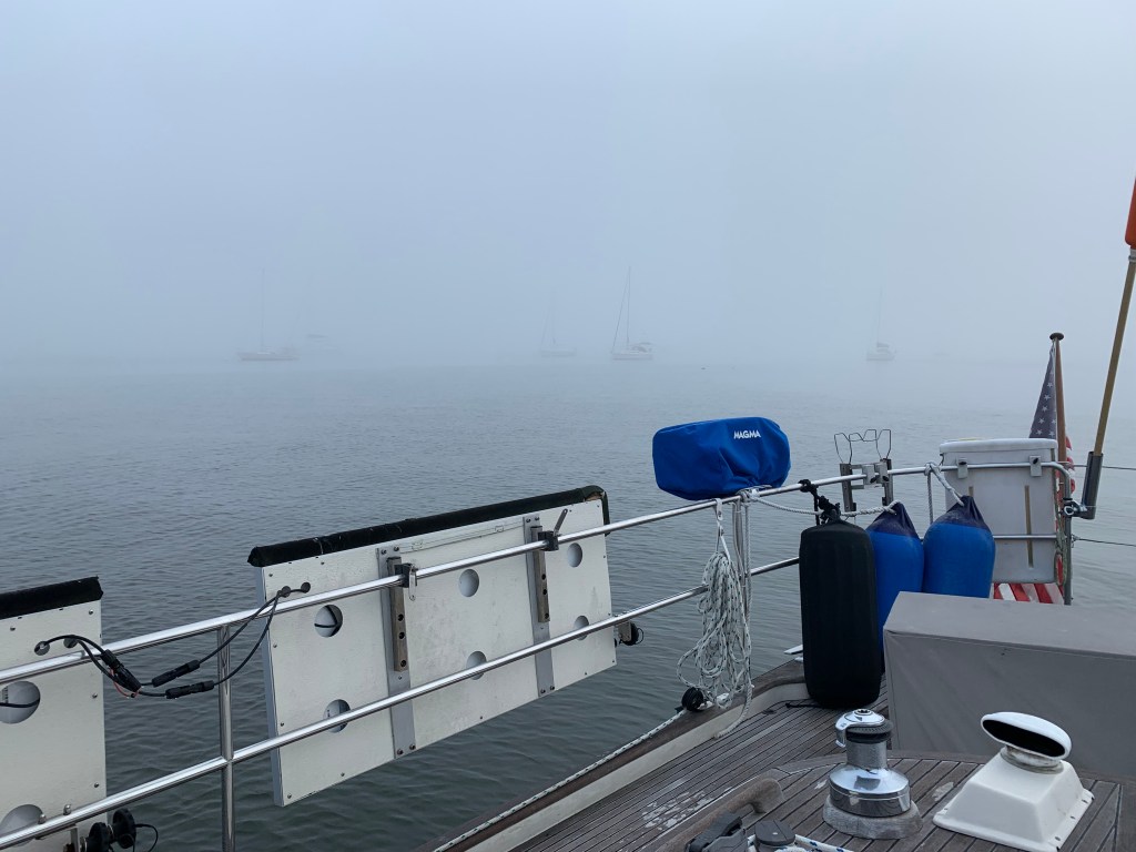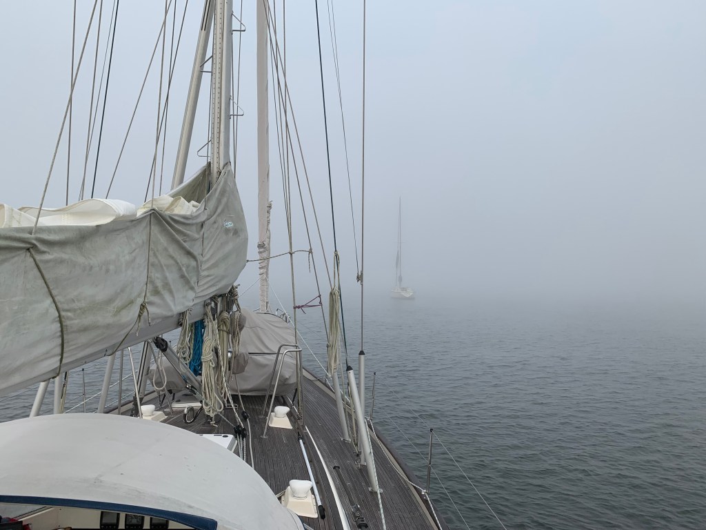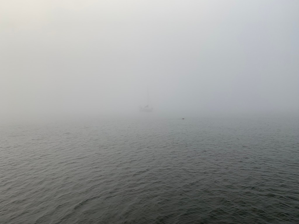 We got fogged in! The next morning before leaving Raritan, we were astounded by the feeling of being fogged in. I’ve never experienced this before. It felt like we were all alone and no one could see us; which was probably true. We didn’t expect to have this happen in the morning where we couldn’t see anything around us. We wanted to wait until the fog lifted until to leave to ensure our safety.