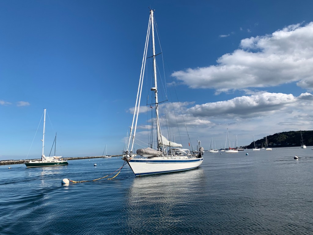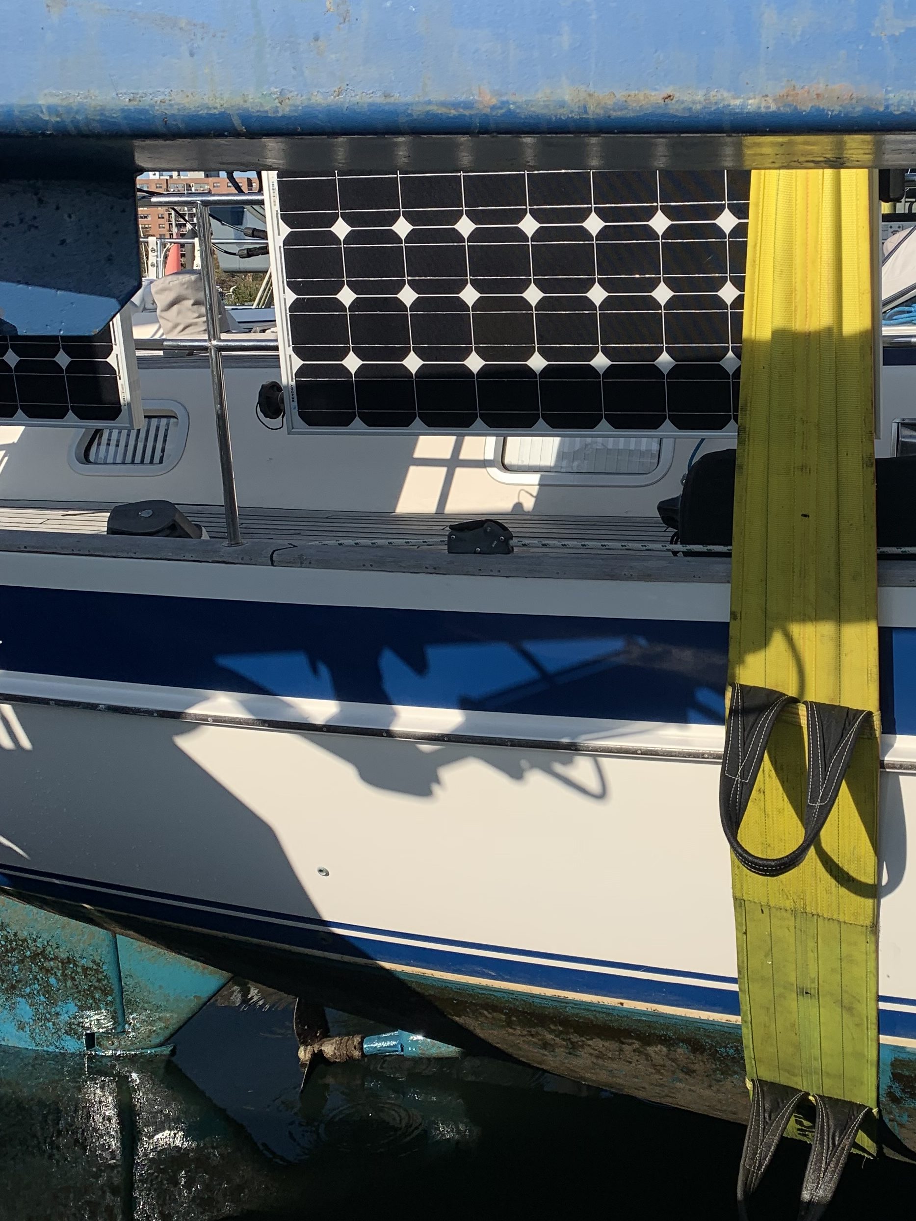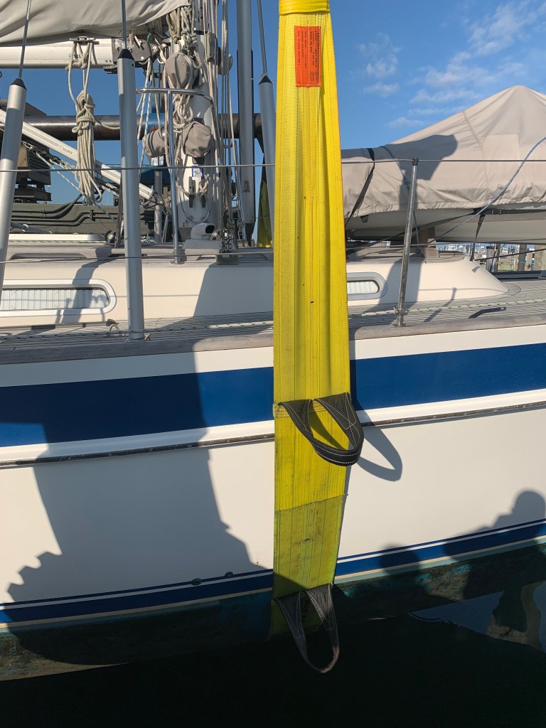 Although we were initially adamant to not take down the backstay and not lay down the antenna pole, we sorted out how to do this. We spoke with the marina and they agreed to give it one more try. In the end, this attempt did not happen, because there were no stands for our boat. Skyward needs 8 SBS-1 stands + a bow stand. The marina could not provide these, and it would have cost us over $2,500 for new stands; they would not have been delivered on time.