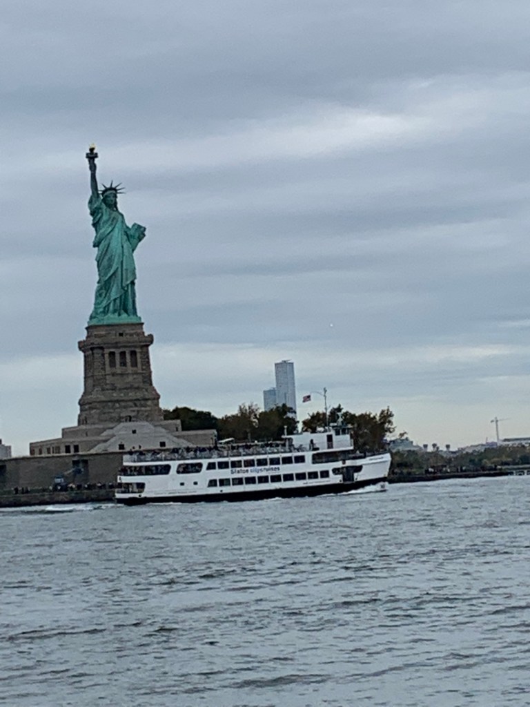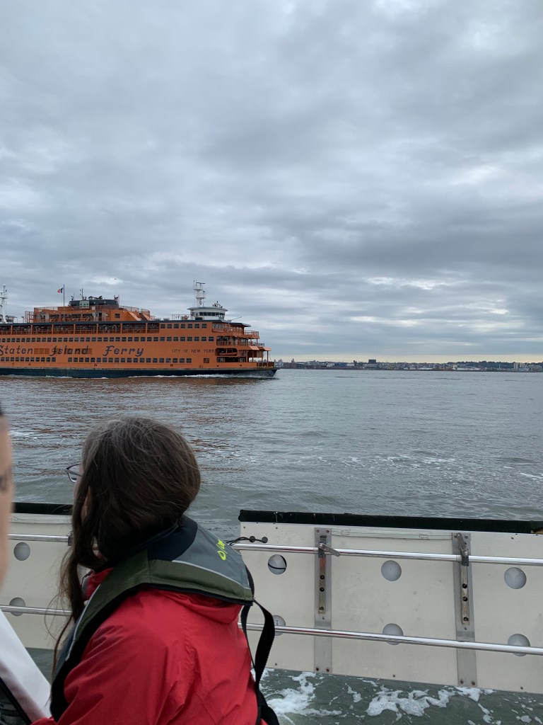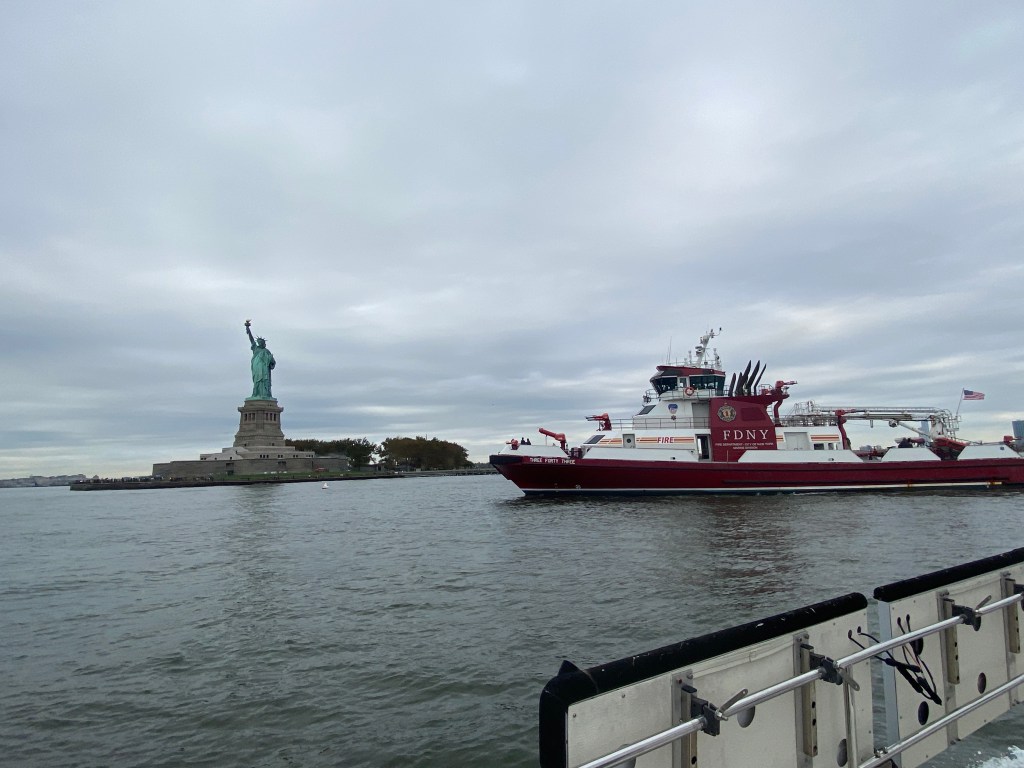 When we got to the Statue of Liberty, we were greeted not only by the magnificent statue, but also a FDNY pumper, a Staten Island Ferry (as expected), and a tourist / sightseeing.