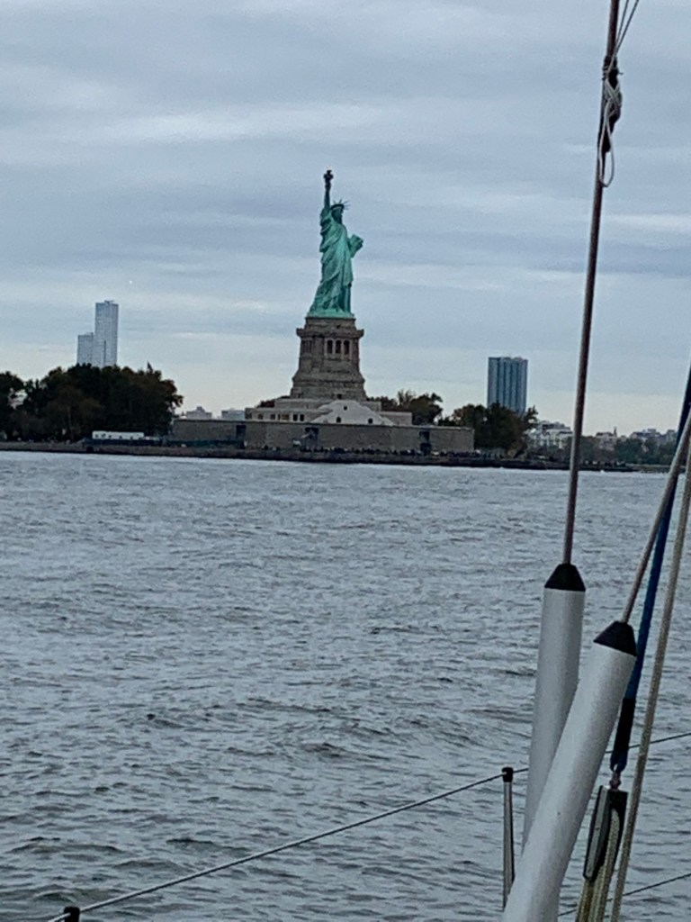 We motored back (yuck!) down to the Sandy Hook area. The whole day was overcast. Gray, gloomy — blah! Once we past the Verrazzano, the heavens opened giving us bright sun and glare. It was magnificent. Although we were still motoring due to the winds holding < 5 knots.