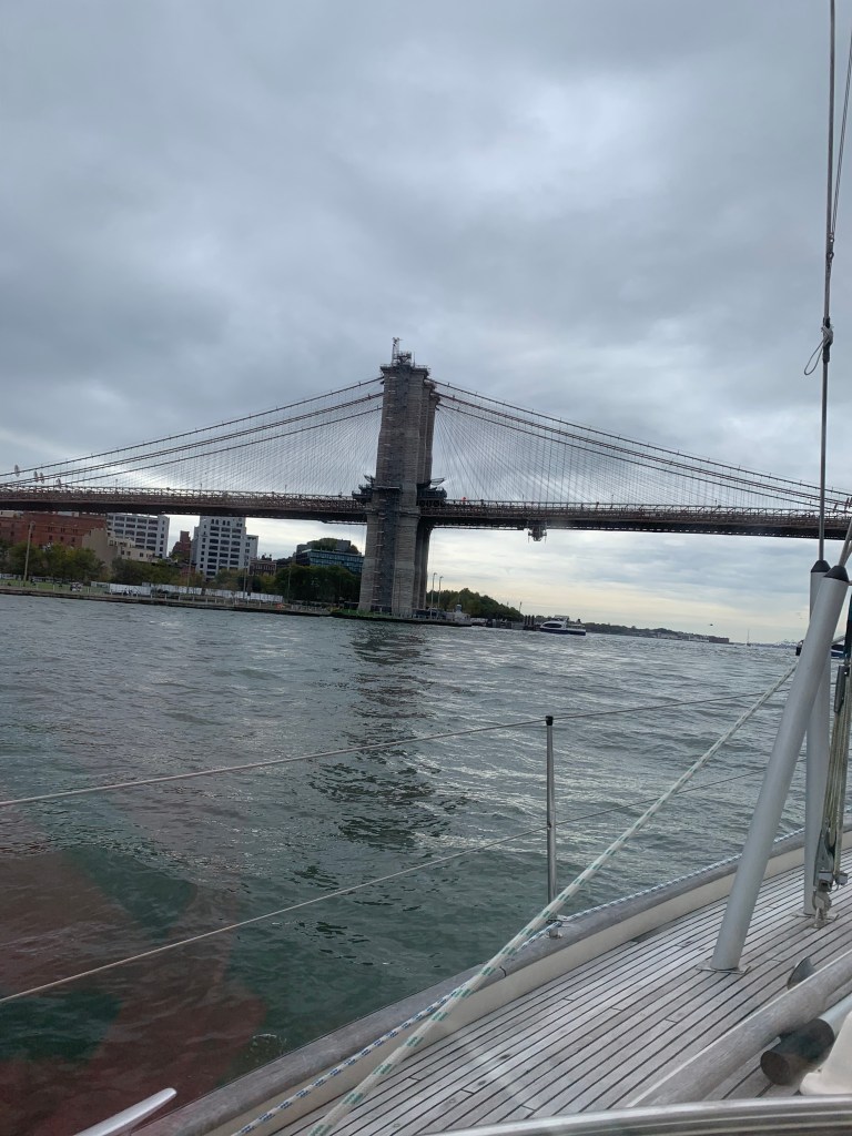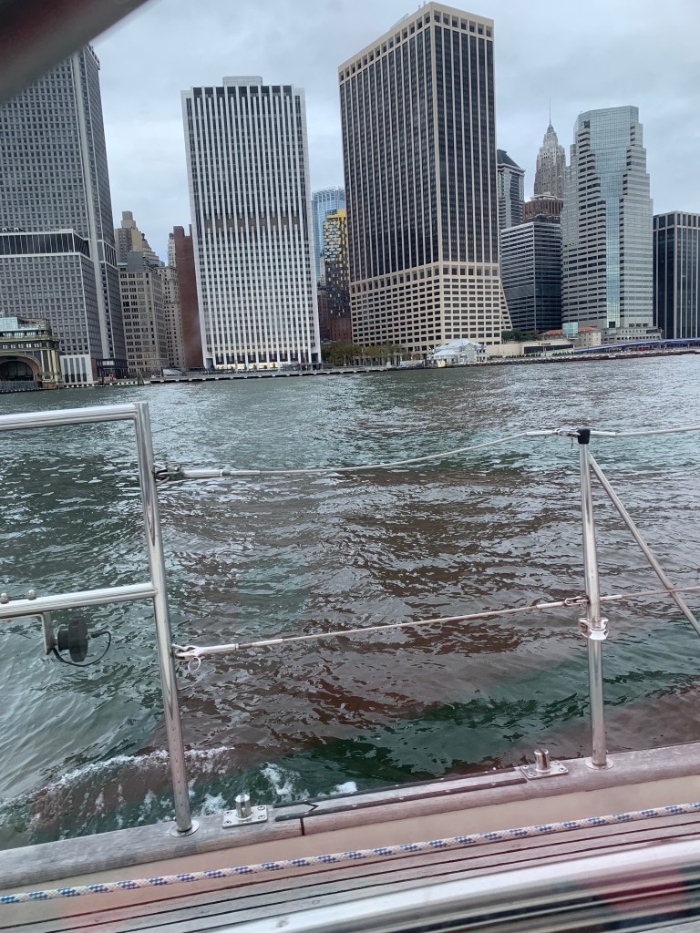We had the current with us, but the wind was starting to really slow down. We made it all the way up to the Water’s Soul sculpture before the wind was down below a few knots and shifting. We were making no Northern headway so we decided to run down back to the battery and head up the East River for a few minutes.