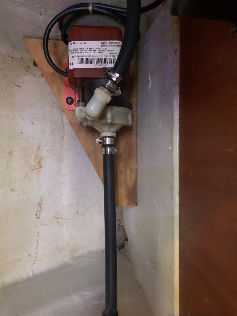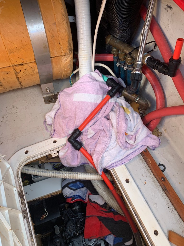 - Closed the thruhull valve on the seawater discharge on the starboard side behind the settee