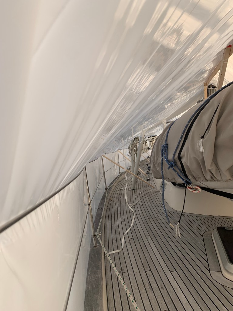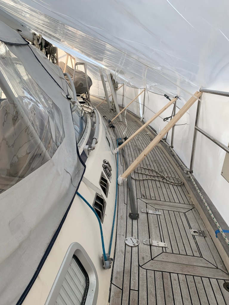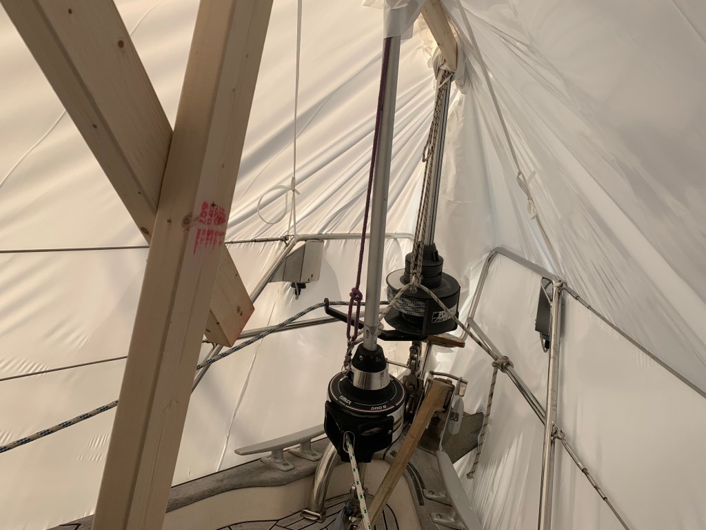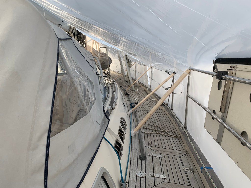 The marina installed shrinkwrap, which was our first time. This is pretty cool!