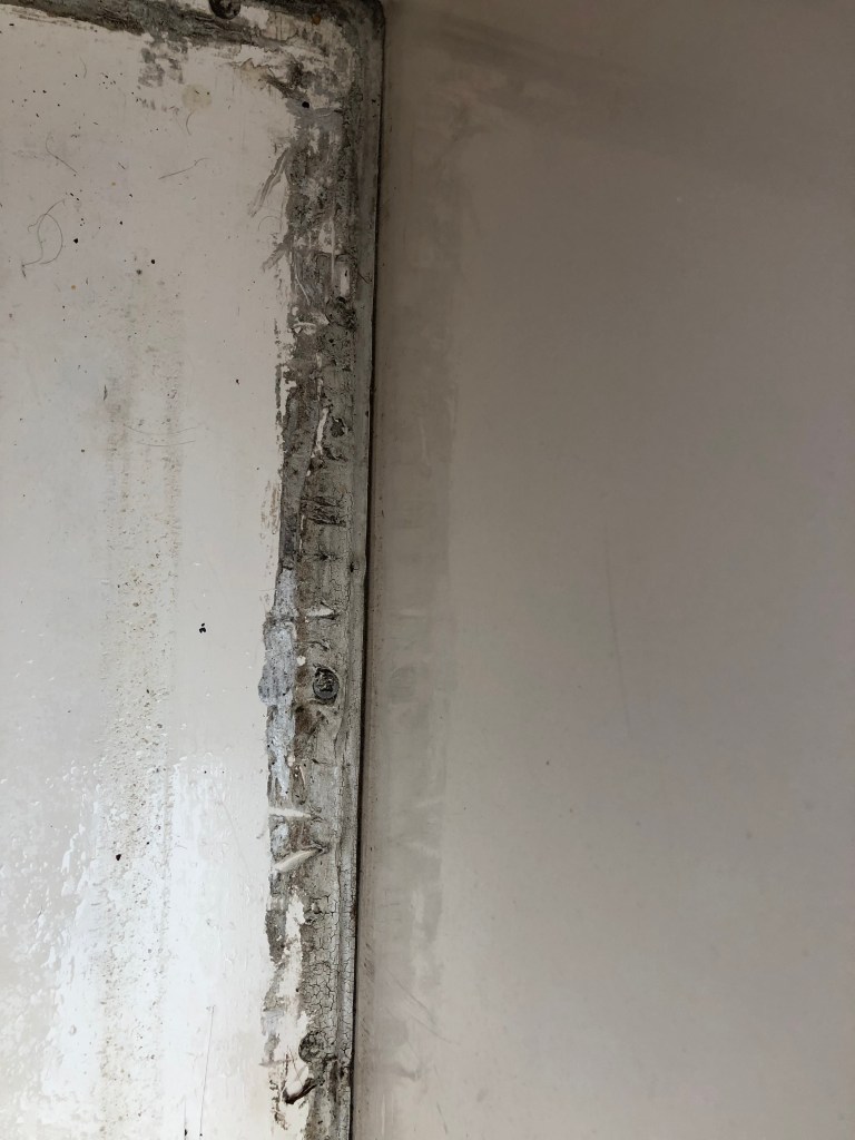 It didn’t take long to realize that it would be most efficient to simply cut off the post on the inside of the boat. So I took my 4″ grinder and did what needed to be done.