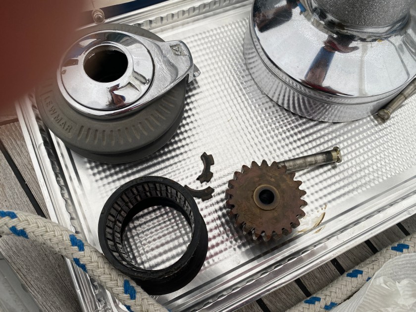 To get some warmth, we moved to the cockpit and decided to work on our 44ST winches. This turned out to be a fairly standard disassembly, cleaning and re-building of the winches. Although since we’ve never done it, we knew this would prove to be an opportunity to learn.