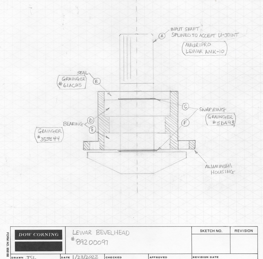 In previous posts, I’ve updated our progress on the bevelhead removal and re-building effort. I disassembled the bevelhead which was fairly easy to do. I explained that the output shaft and bearing was smooth and clean, and therefore, did not need to be rebuilt. This is written with the intent to help anyone faced with a lot of corrosion on their bevelhead and how to rebuild their assembly.