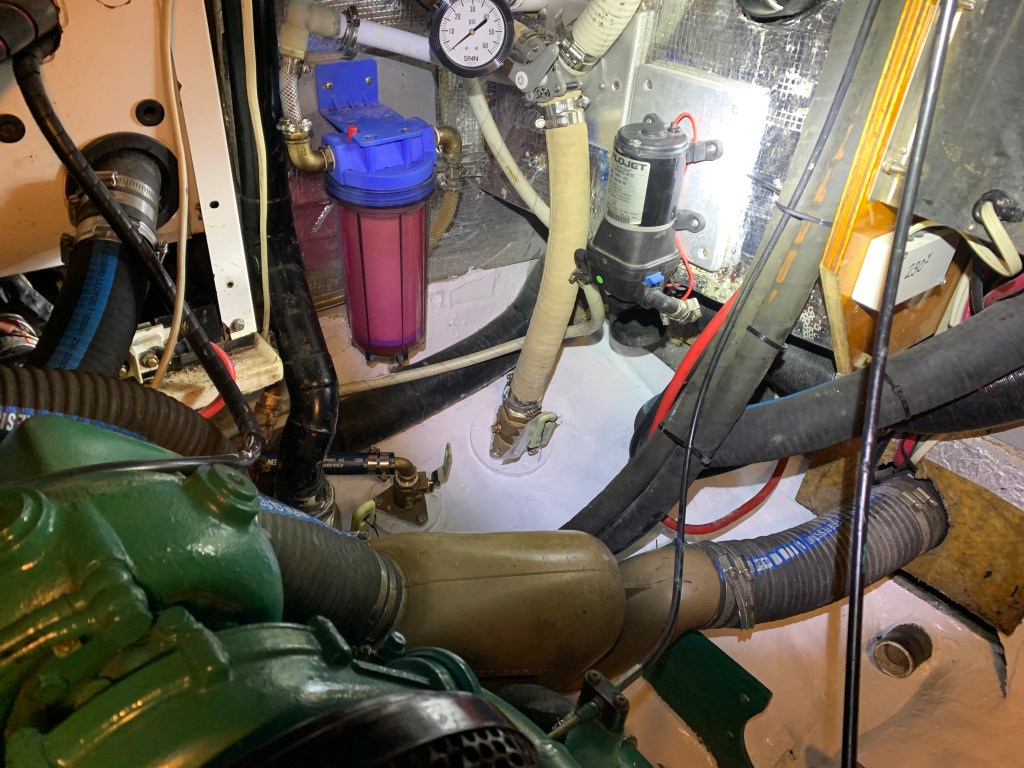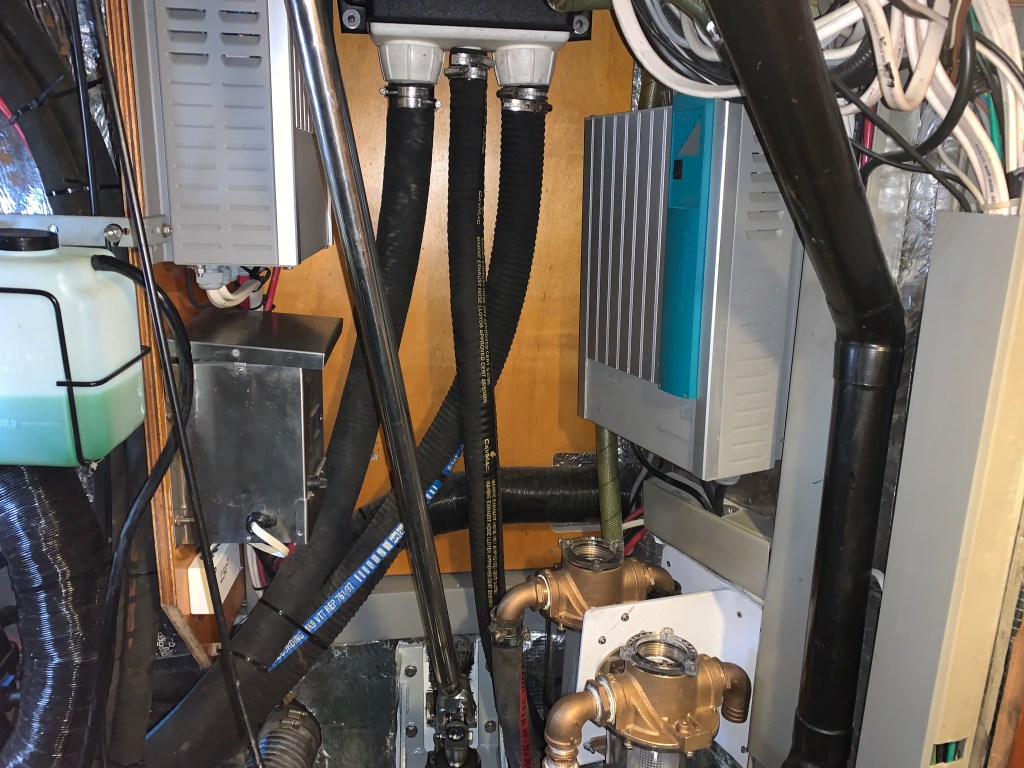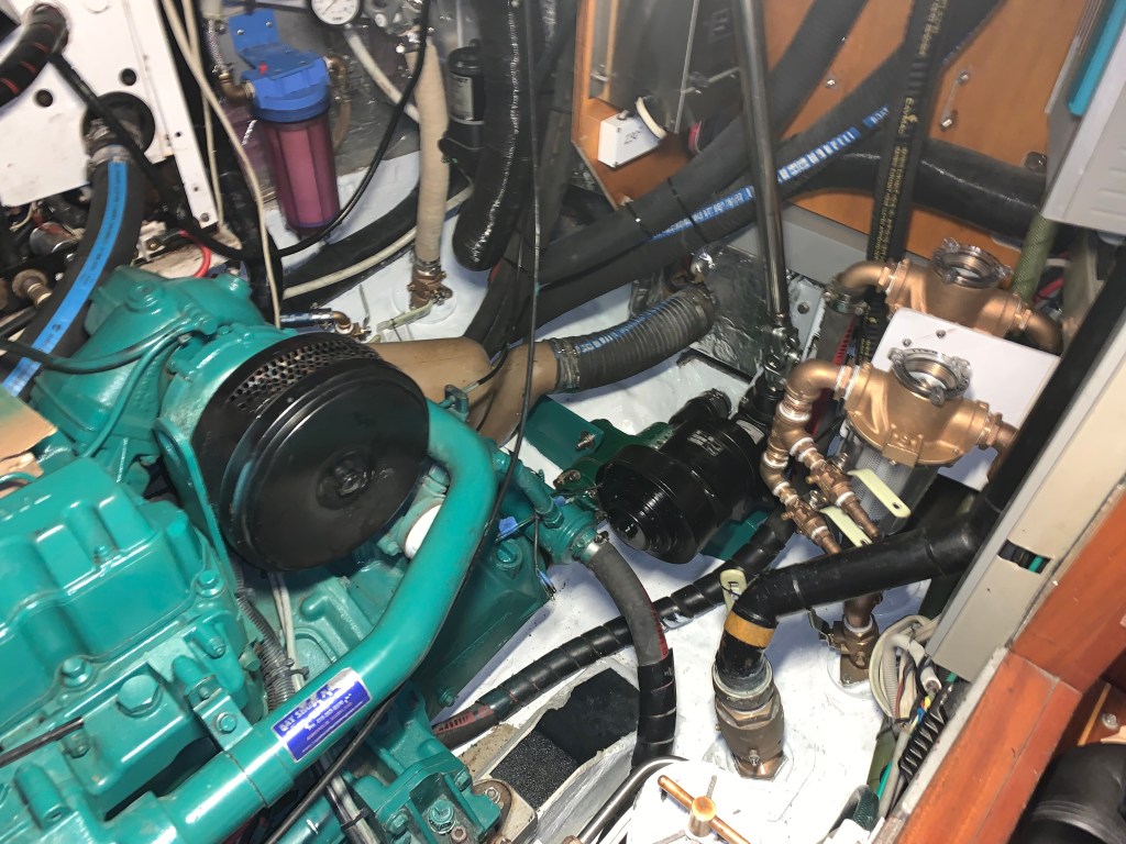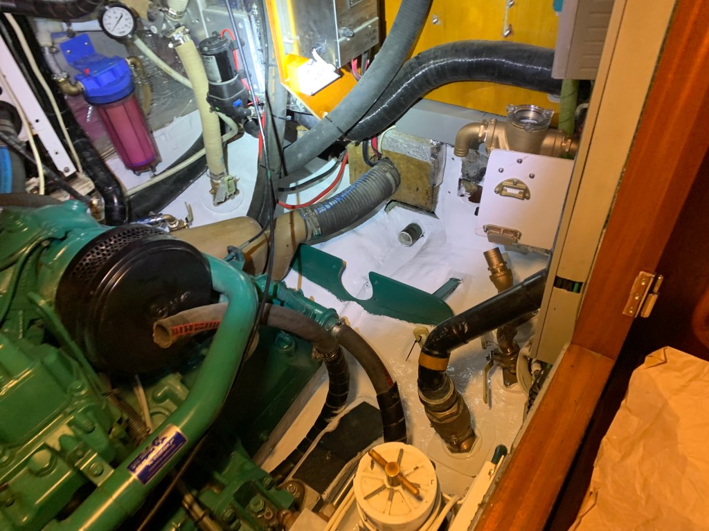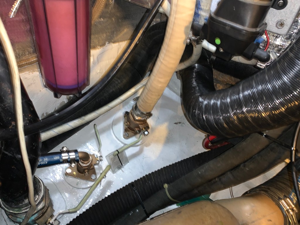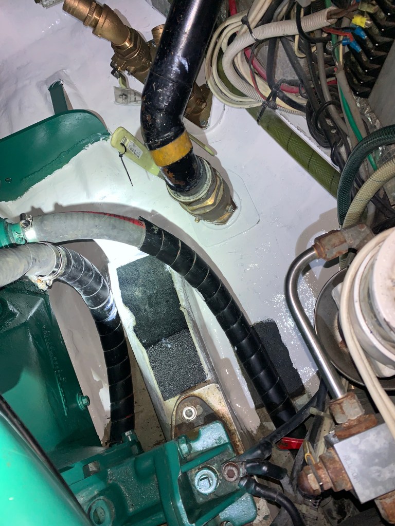 - Eliminated 1 engine compartment thruhull used for the watermaker and combined it with another one. This thruhull was right at the entrance of the engine compartment and always made it tricky to get into the area.