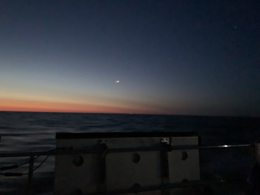 Once we rounded the Cape at about 5:00 am, lights in the sky caught my eye. I couldn’t believe how bright they were above Cape May. It happened to be Venus, Jupiter, Mars and Saturn!