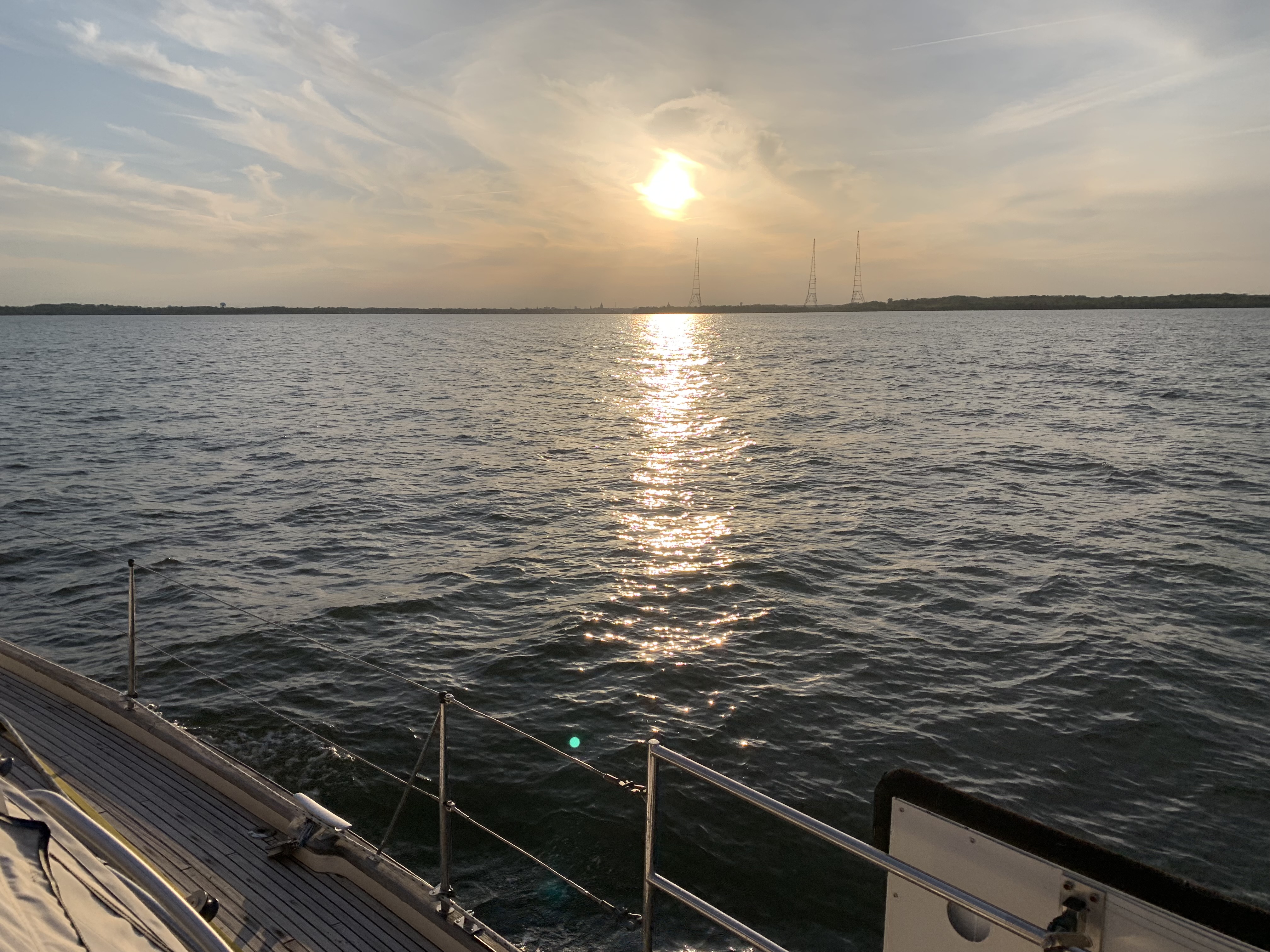 On the final leg, we approached Chesapeake Harbour Marina at dusk and landed safely at our assigned temporary dock.
