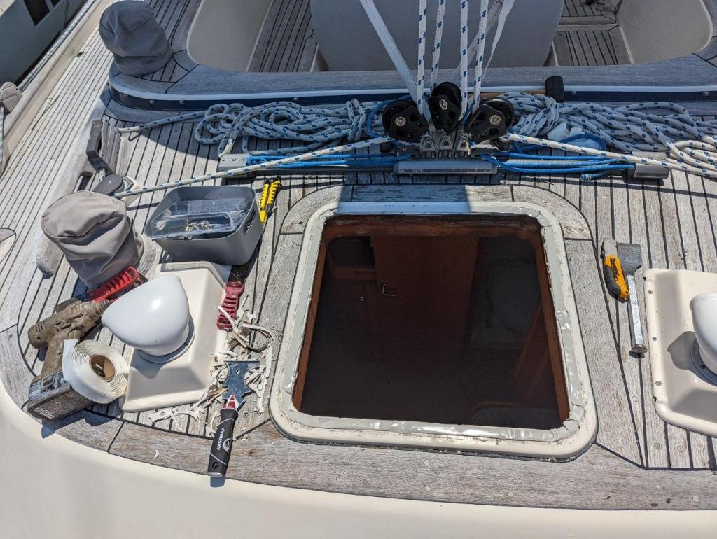 Witht help from Ray, we temporarily repaired the aft hatch which was leaking, installed LED lights in the engine bay, installed exhaust fans on the liquid-filled battery box ot reduce carbon monoxide build-up, installed LED lights and red light with dimmer switches in the galley, repaired the electric winch.