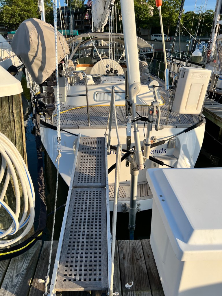 - Bert Jabin Yacht Yard – Annapolis prices and as big as it gets. They had one dock available for Skyward and of course, they have plenty of lift capacity, amenities and contractors. We knew we would have to back into the slip, and the decision was that they did not want our passerelle on their dock permanently while we were docked. They felt that it would impede foot traffic from neighboring boats. All of this conversation was via the phone, and so later I walked on the same dock and realized that we could have made it work very easily on Back Creek. I like that they have a webcam.