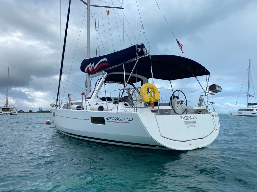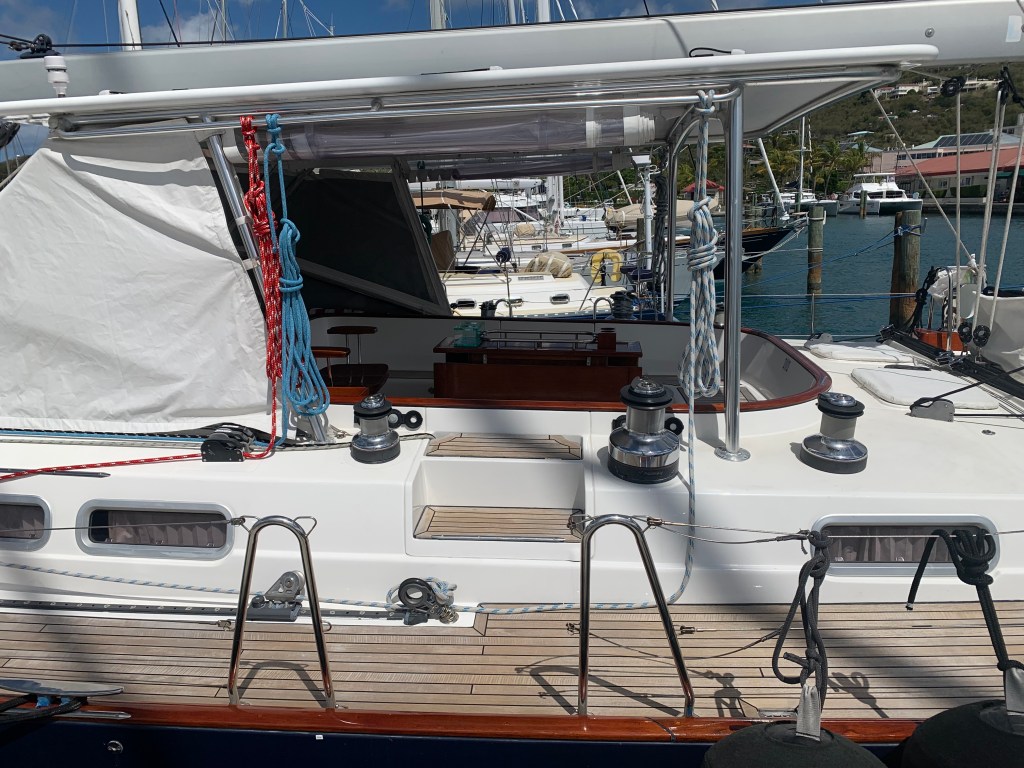 This boat only had 1 cabintop winch with only a total of 3 winches. We could not furl the headsail unless we were on a port tack. We felt that we were somewhat experiences sailors and that anyone that was not experienced could have been in a dangerous situation. We enjoyed the fold-down/walk out transom on this trip. Other than that, it was just a boat.