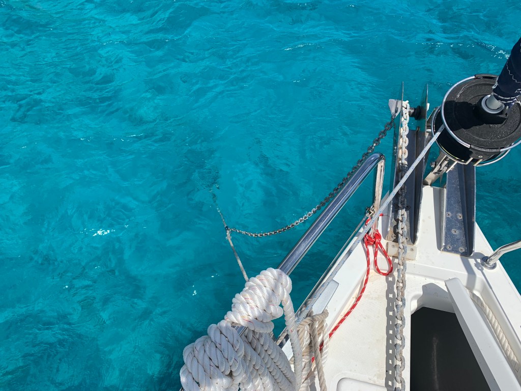 The next morning, we tried to unhook from the mooring ball and leave the anchorage. Instead of looking like pros, we looked like a bunch of rookies by getting the keel wrapped up by the mooring lines. We couldn’t go forward or backward. At the helm, I somehow got the rudder turned enough to kick the bow sideways and we got free. Others in the anchorage were a little nervous that we would hit their boats, and for good reason. Nonetheless, we were free and ran out of there with our tails between our legs.