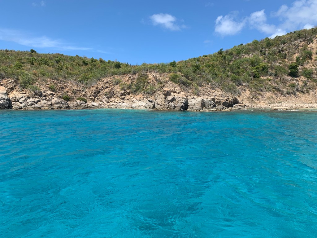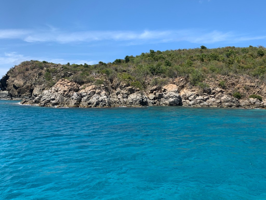 We left our mooring at The Baths as there were several boats waiting in line like they would wait for the close spot in a Walmart parking lot. We had plenty of time on our hands and wanted to find a spot to anchor for lunch. We chose Great Dog, and boy, the water was so clear and we were anchored very close to shore. Scary, though, that we had a lee shore behind us and a rocky bottom. I was nervous the whole time, and could take my eyes off the shoreline and visual markers. But the views were spectacular and the few boats that were there left.