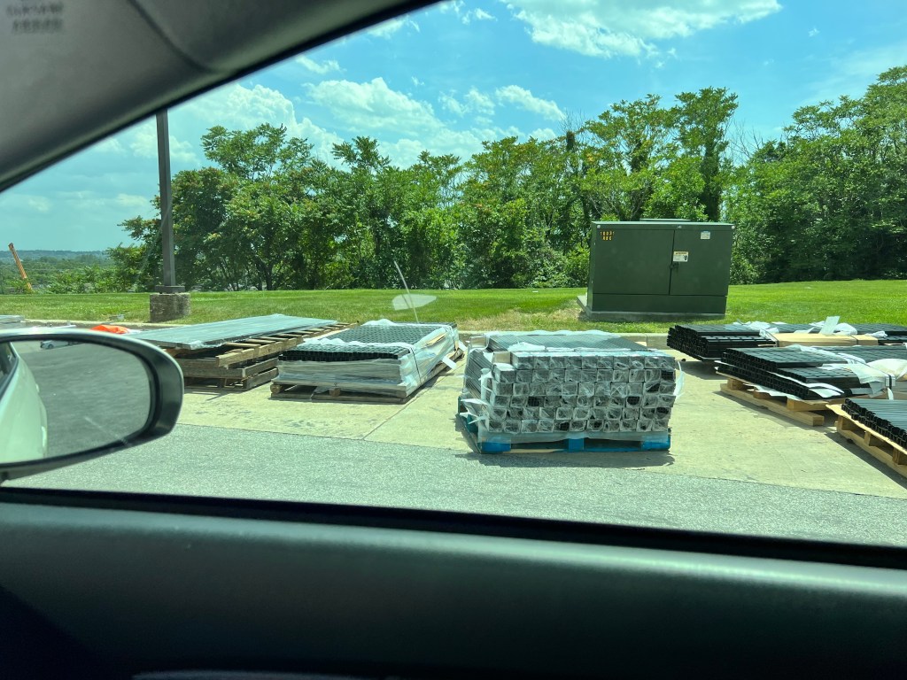 Once all of the sticky glue and flaking insulation was removed from the panels with scrapers and Goo Gone, I took the panels to Chesapeake Coatings. Chesapeake Coatings is a high volume shop for fencing pipe, and other large items that arrive on pallets to their shop.