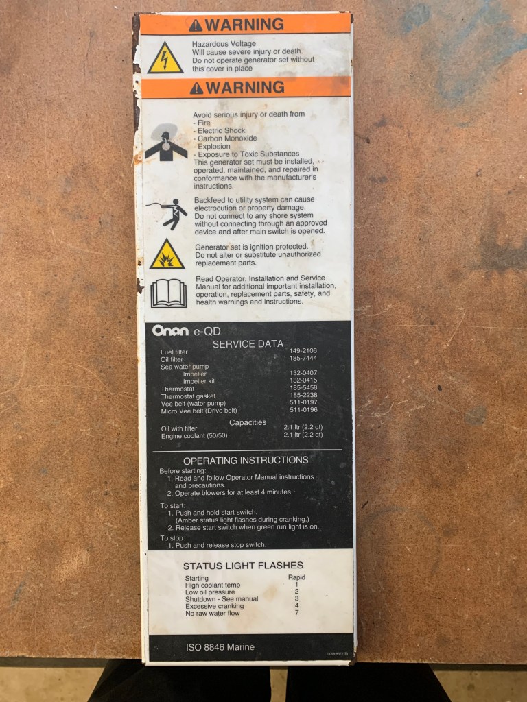 There are two ways to do this. 1) Buy all new panels from Cummins / Onan or 2) Media blast and powder coat the existing panels. Cummins / Onan doesn’t have these panels in stock and cannot make them for me, so that option is very low. So the only path we have is to have these panels re-painted. Media blasters don’t like glues and paper getting into their spent media collection systems, so we have to get all insulation and labels off the panels. But if I did that, how was I going to re-create these labels since the removal process would destroy them? Cummins could not generate the labels and send them to me.