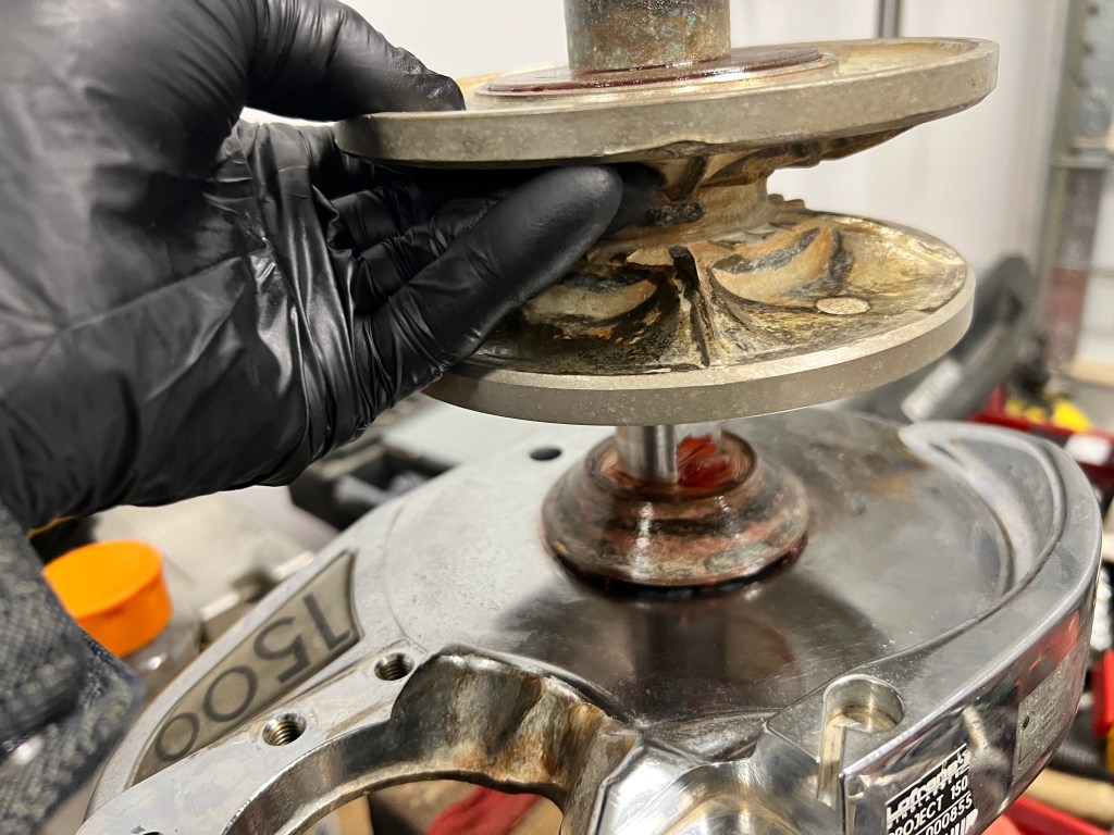 I mounted the windlass in my vice as shown in a previous post. That wasn’t too bad. Then I removed the seal with a screwdriver. I instantly saw that the seal had a crack in it and was beginning to fail. That means that water could make it’s way into the bearing and sit and brew up some nasty corrosion. Let’s see what the next step brings.
