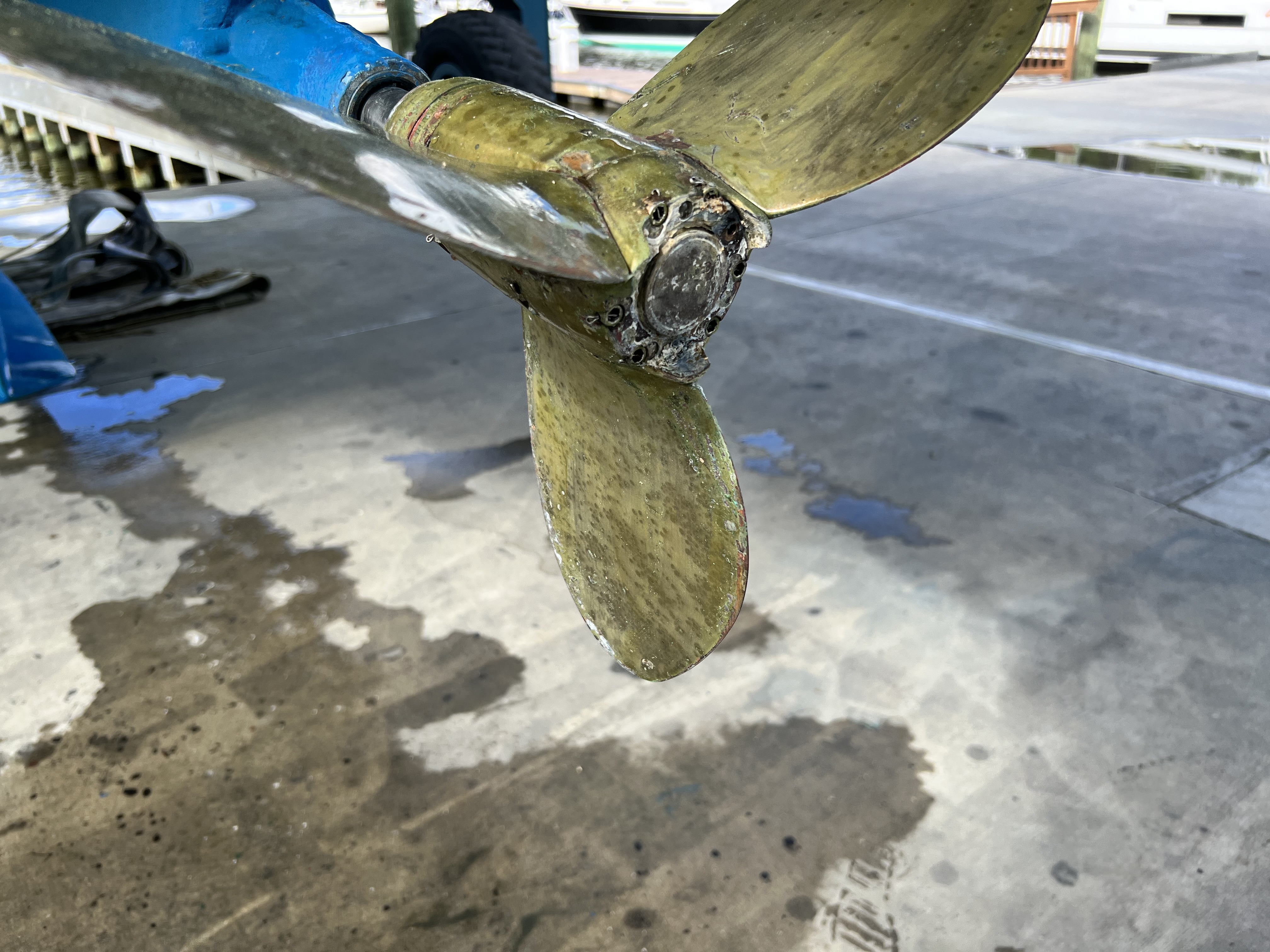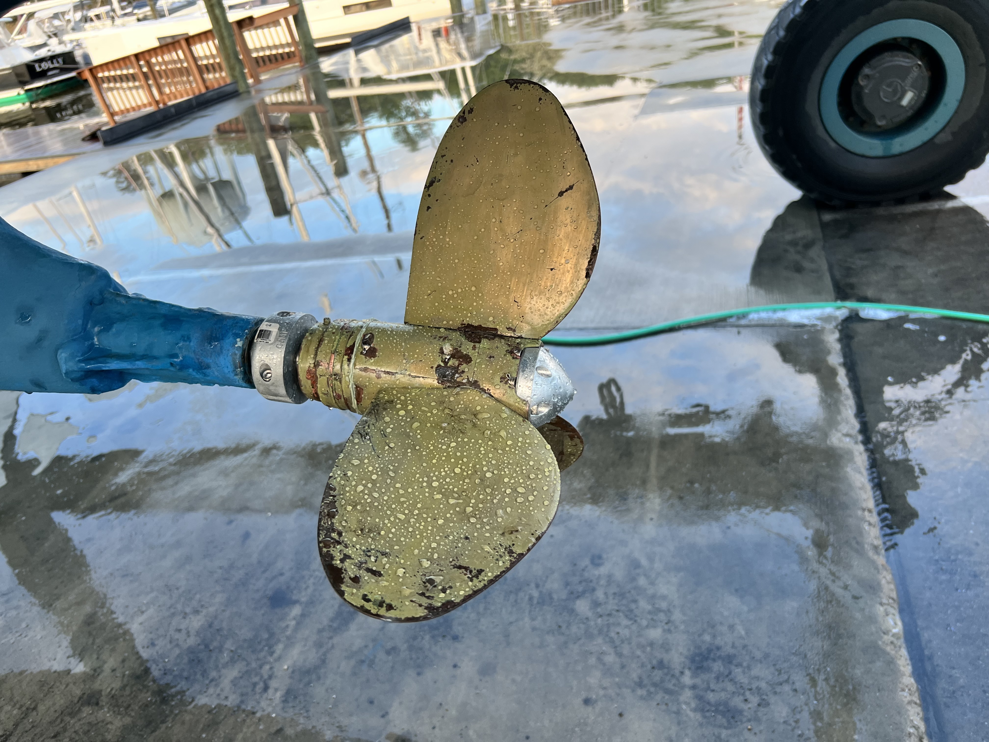 Once the boat was out of the water than the spray down was complete, I zoomed my focus in on the prop. To my astonishment, the Zincs were GONE and the PropSpeed looked like it was coming off in patches! After speaking with a lot of people afterwards, it seems as if there are some electrical issues at Liberty Marina. The first thought in my head was whether or not I had spare zincs to install. Having only a few hours of daylight, I had a lot of work to do — this became a scramble.