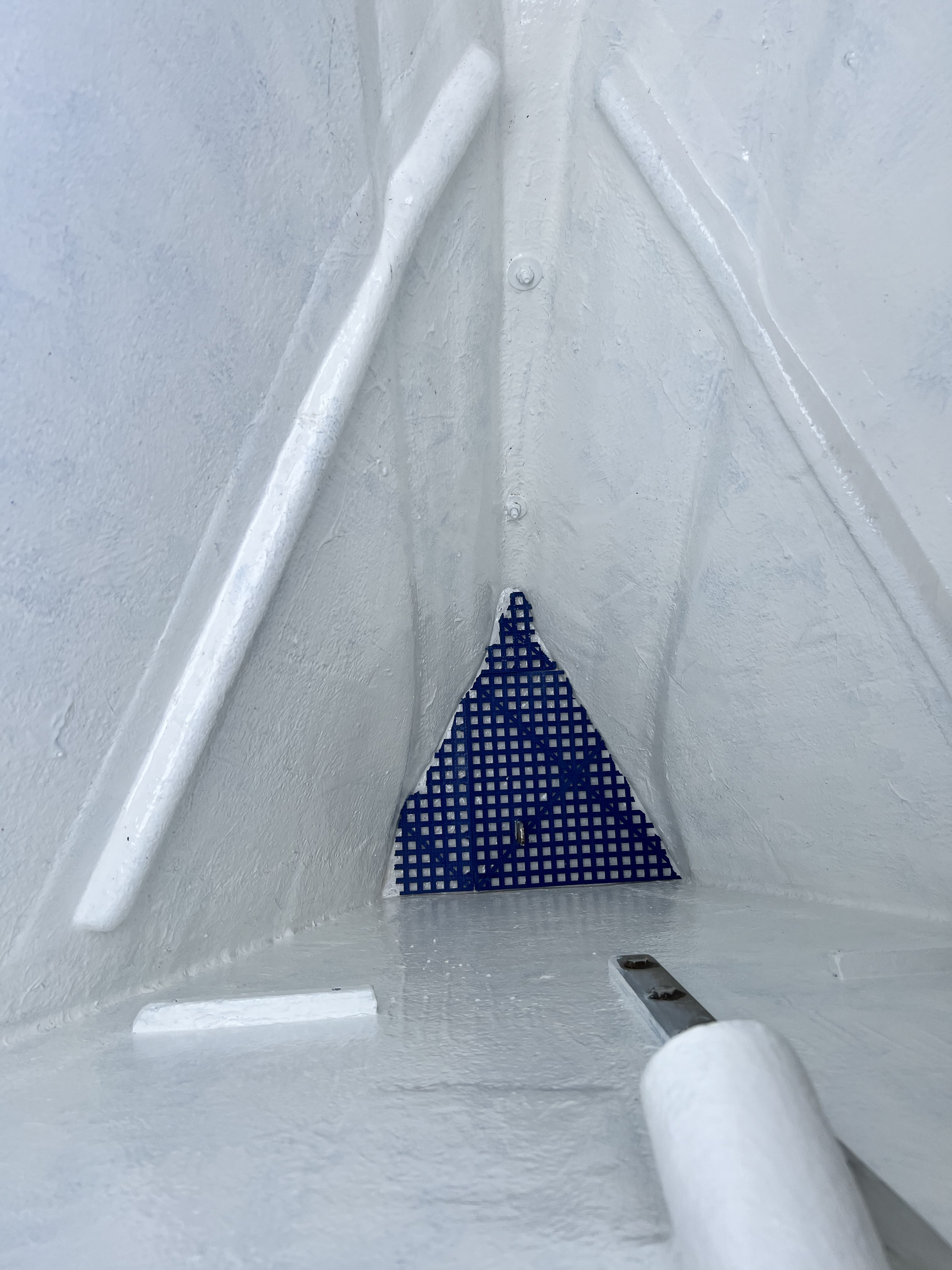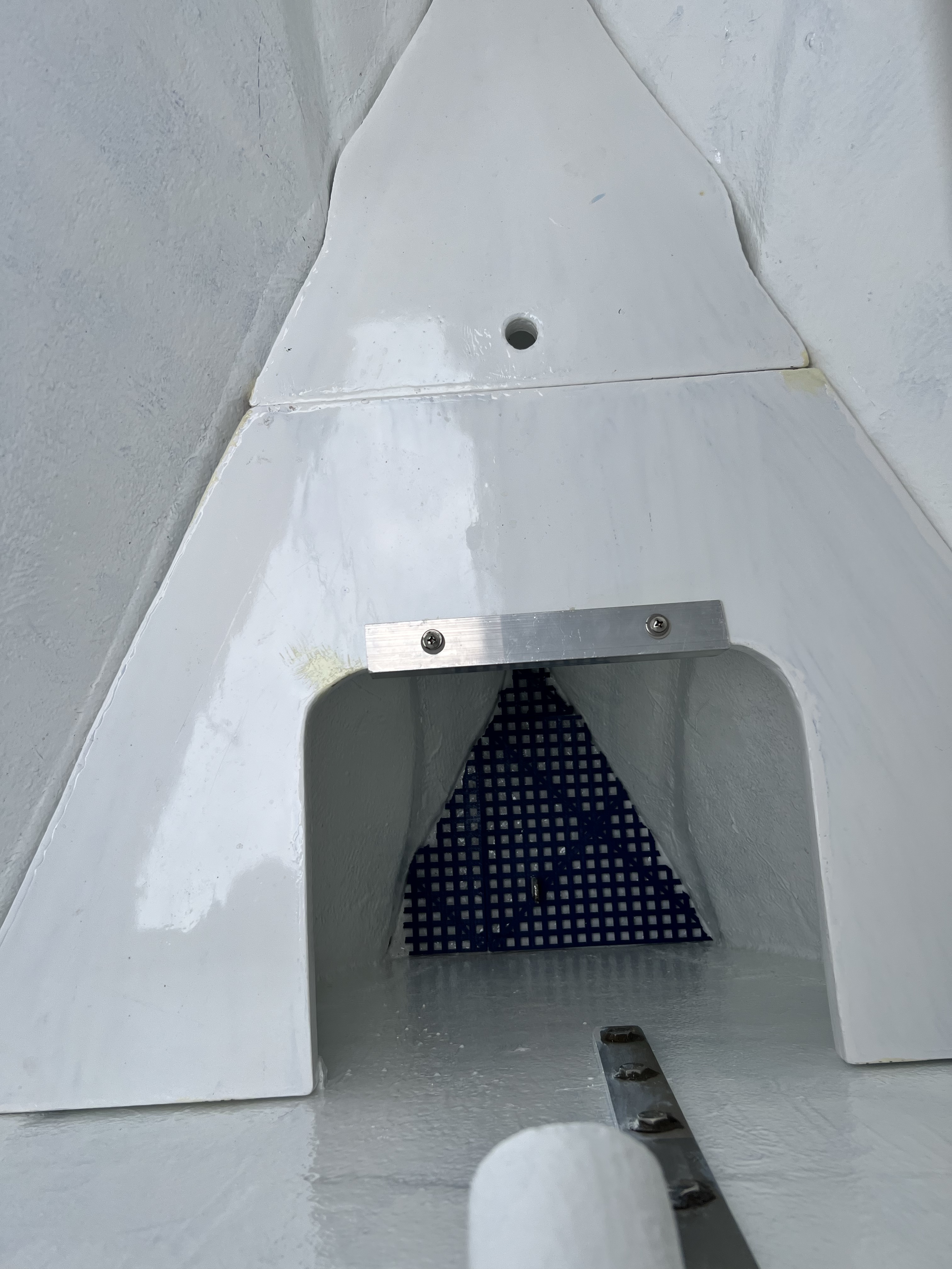 Installed the new anchor and G-4 chain (painted RYBWG every 25 feet) after the anchor locker was completely refreshed with 2 coats each of Interlux 2000e and Bilgekote