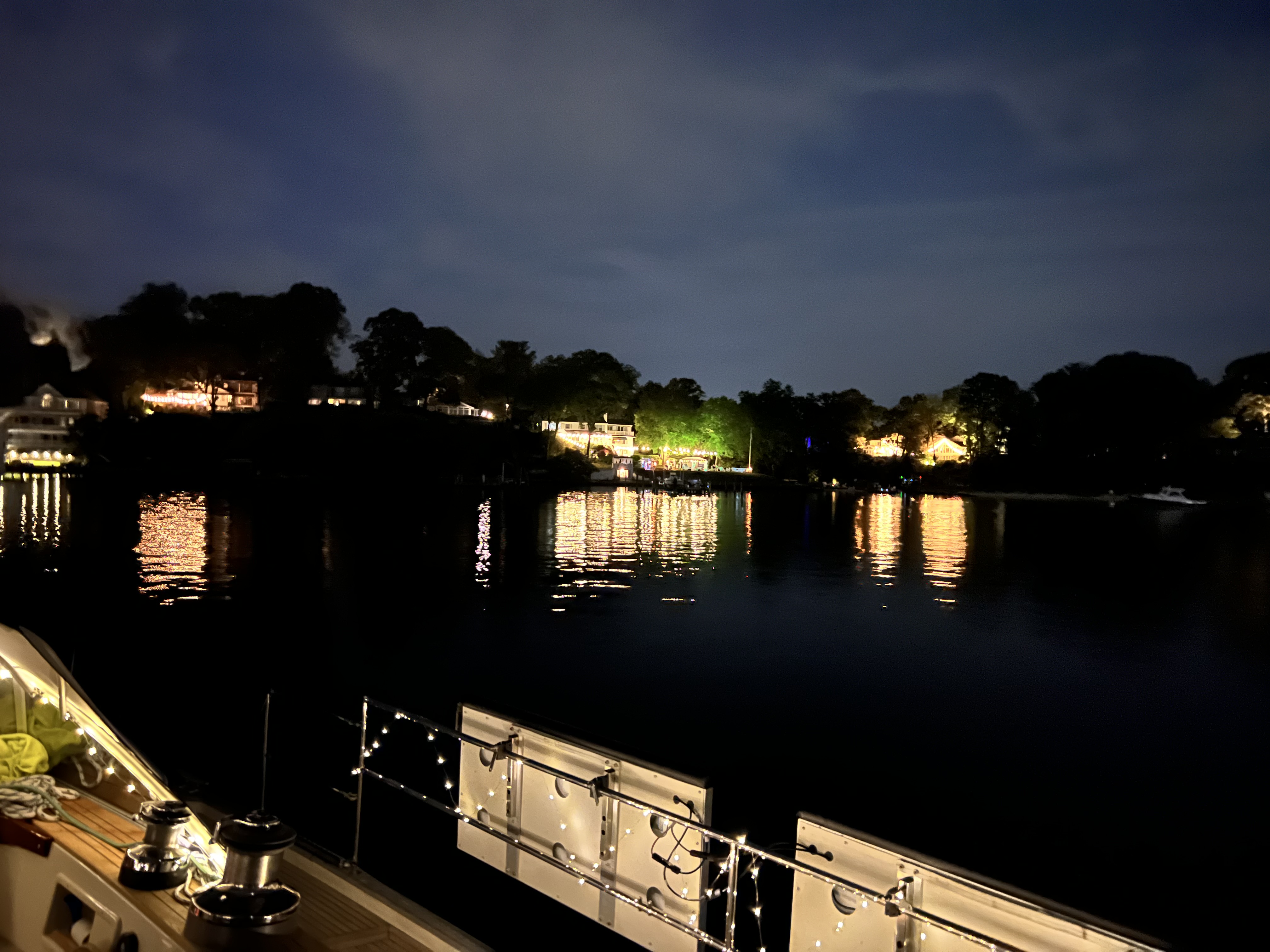 We saw a lot of power boats whipping into our anchorage with no regard for their wake. Some even sped in between Skyward and Delfin over top of our anchor chain. That evening we watched several captains that ignored the speed limit buoys which we were inside of and tried to take in all of the gorgeous views of the homes on the River.