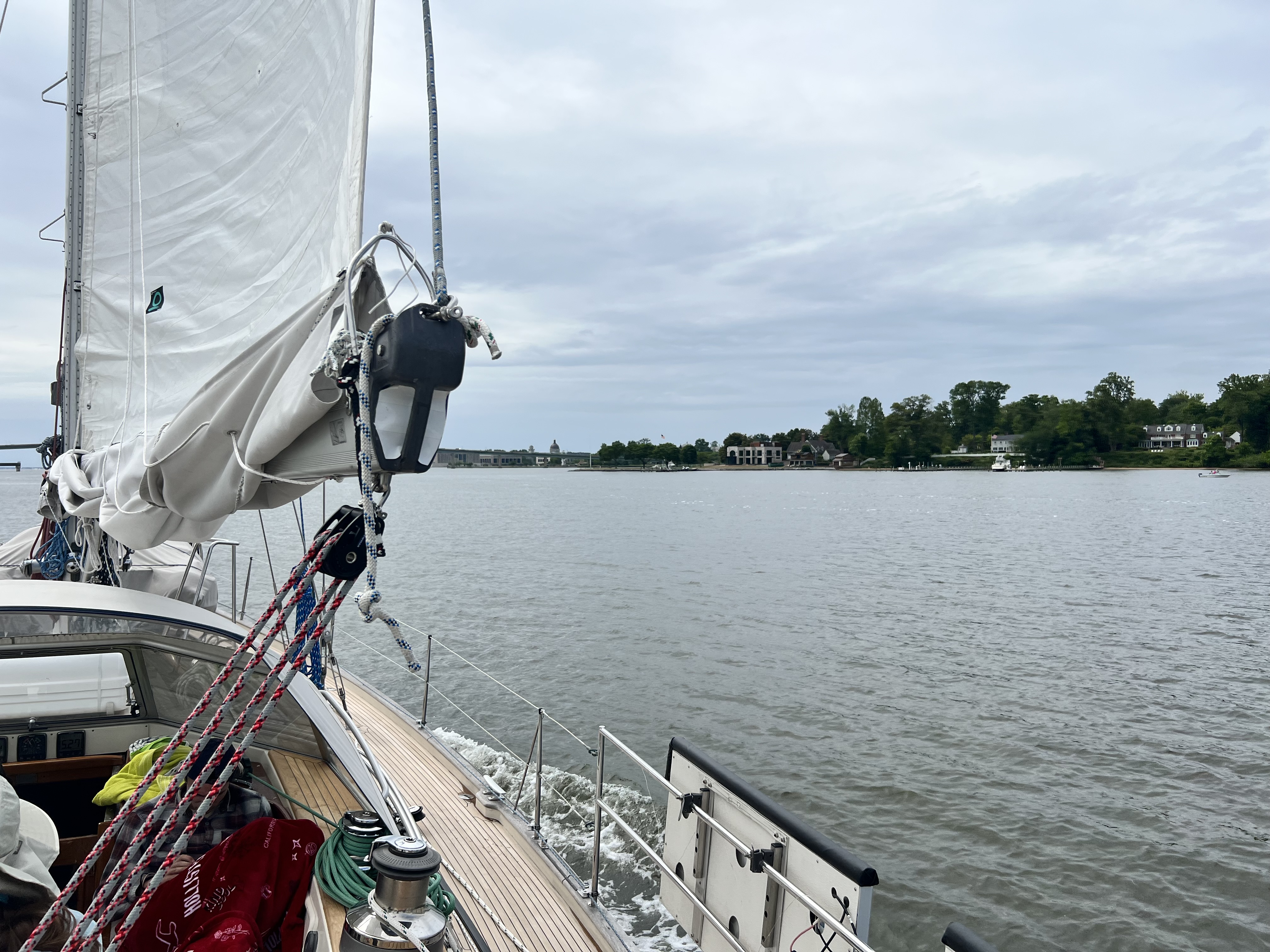 As soon as we got into the Annapolis Harbor we saw about 8 knots of wind. It wasn’t much but we were happy to fill the sails and set a course towards Bloody Pt.