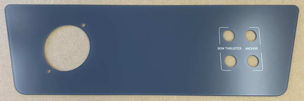 In those conversations, Ludvig told me that they do not provide helm panels, but he shared the name of the supply company that makes panels for all new HRs. They are Sikab based in Kristinehamn, Sweden. I worked closely with Patrik who was fantastic through the entire process. He shared that they provide 3 mm acrylic panels for all new Hallberg-Rassy’s and they etch the printing and lines from the backside. As the first step, I made a design drawing with dimensions for Patrik to load into his CAD program.