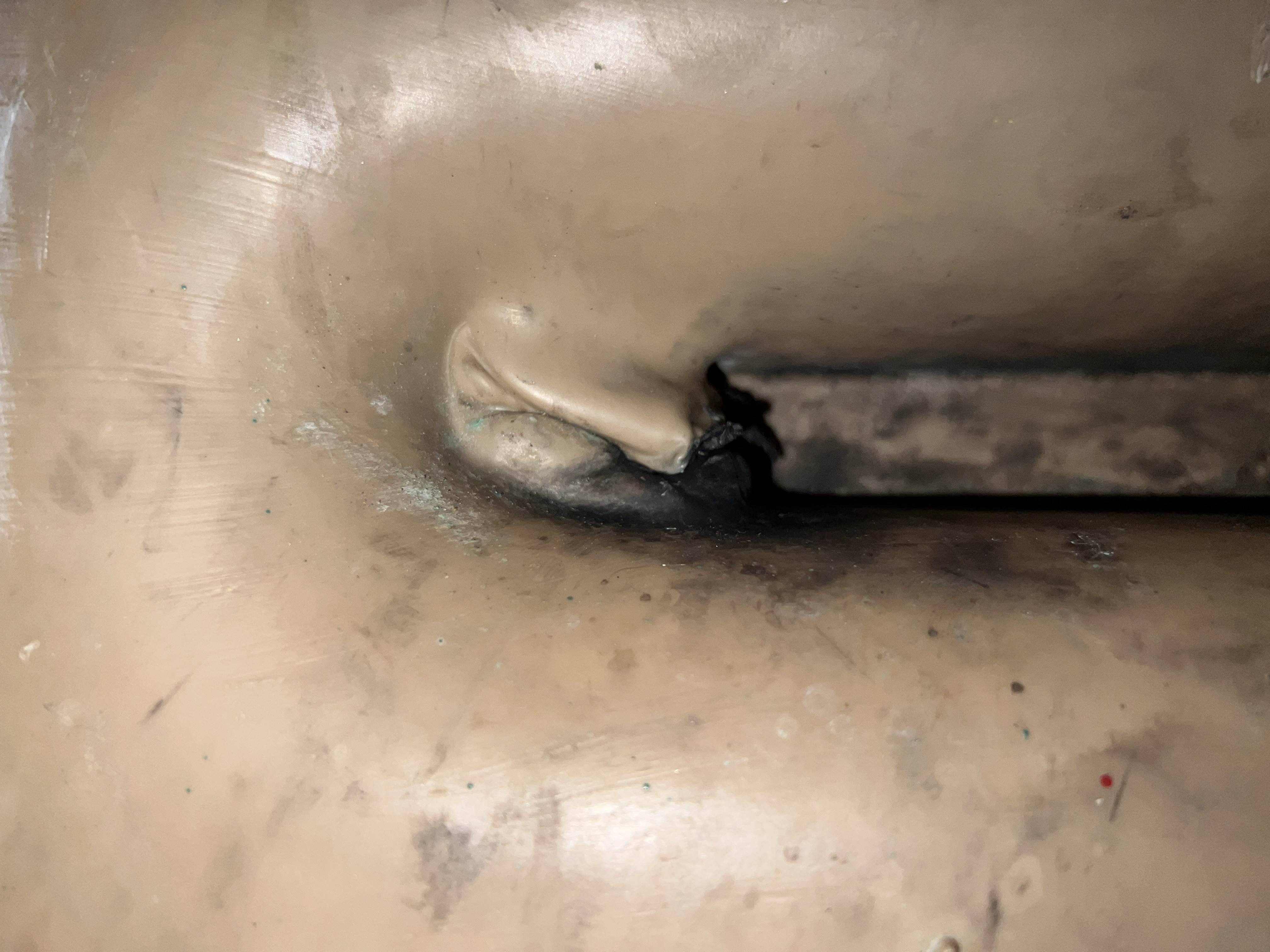 After a few minutes, I cooled down (slightly). After restarting the engine again, the kids were yelling “there is smoke in the engine room”. Turn the key, go down below. I peeked into the engine bay, and immediately saw that water was coming out of the Vetus muffler. It melted under extreme heat and created a hole which I could not see but I could feel water flowing out of the unit on the backside.