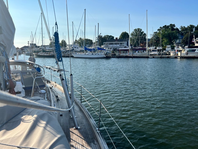Although we started our sailing journey in the NY/NJ area, that didn’t entirely prepare us for sailing the Chesapeake Bay. When we left the mooring at Atlantic Highlands for a sail, we could be in the ocean within 60-90 minutes, and we often had good wind. But to get to any decent anchorage or stopping point meant either a 4 hour run into NY Harbor to drop anchor at the Statue of Liberty or a 8+ hour run up the East River into Long Island Sound. We made that trip several times, and it became normal for us to transit North that distance to experience new destinations. Most towns are well-established with a lot of restaurant options, shopping, and most importantly, ice cream.
