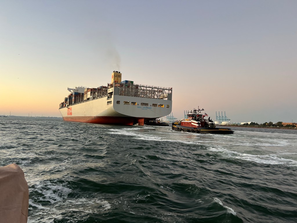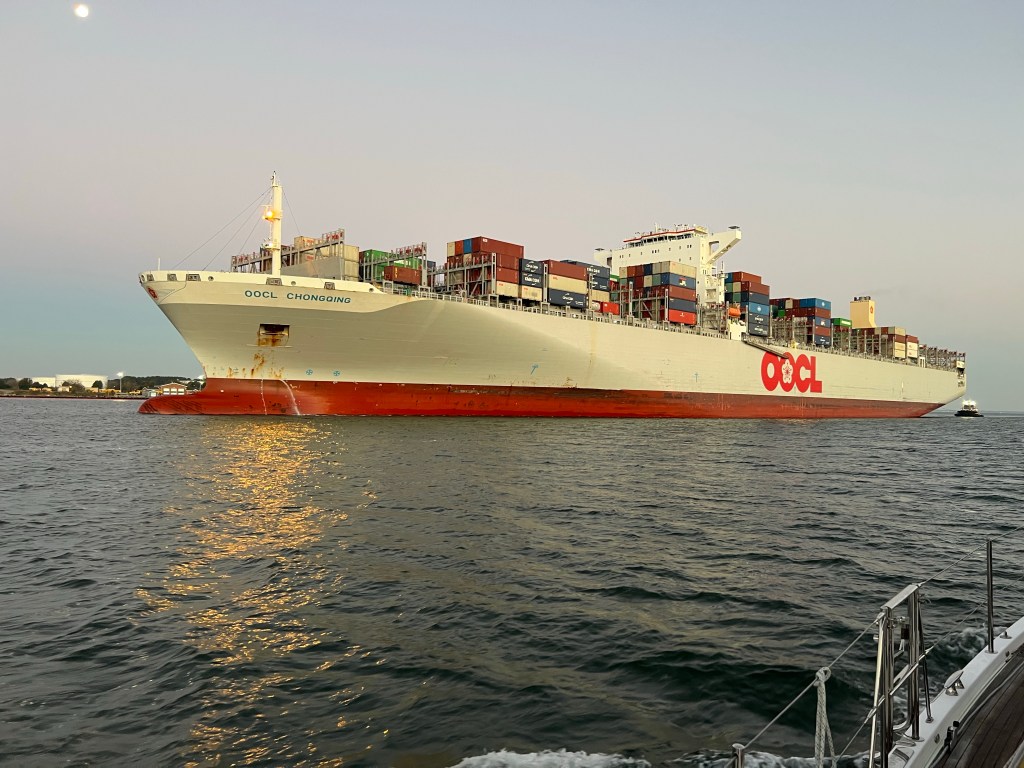 We were all impressed by the large ships and how the tugs maneuver them. This one pictured really had us in awe as it nicely invited us to stay out of its way and asked us to navigate outside the channel.