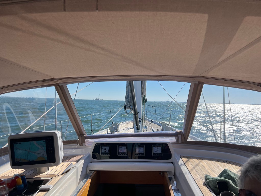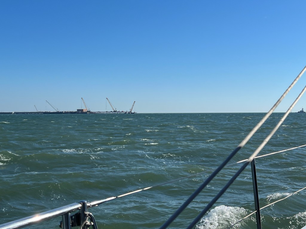 We approached the Chesapeake Bay Bridge-tunnel, a 17.6 mile engineering marvel at the entrance of the Bay connecting the Eastern shore to the Western shore. 11 months ago, I was on that bridge getting ready to witness our friends on Sail Cloudy Bay.