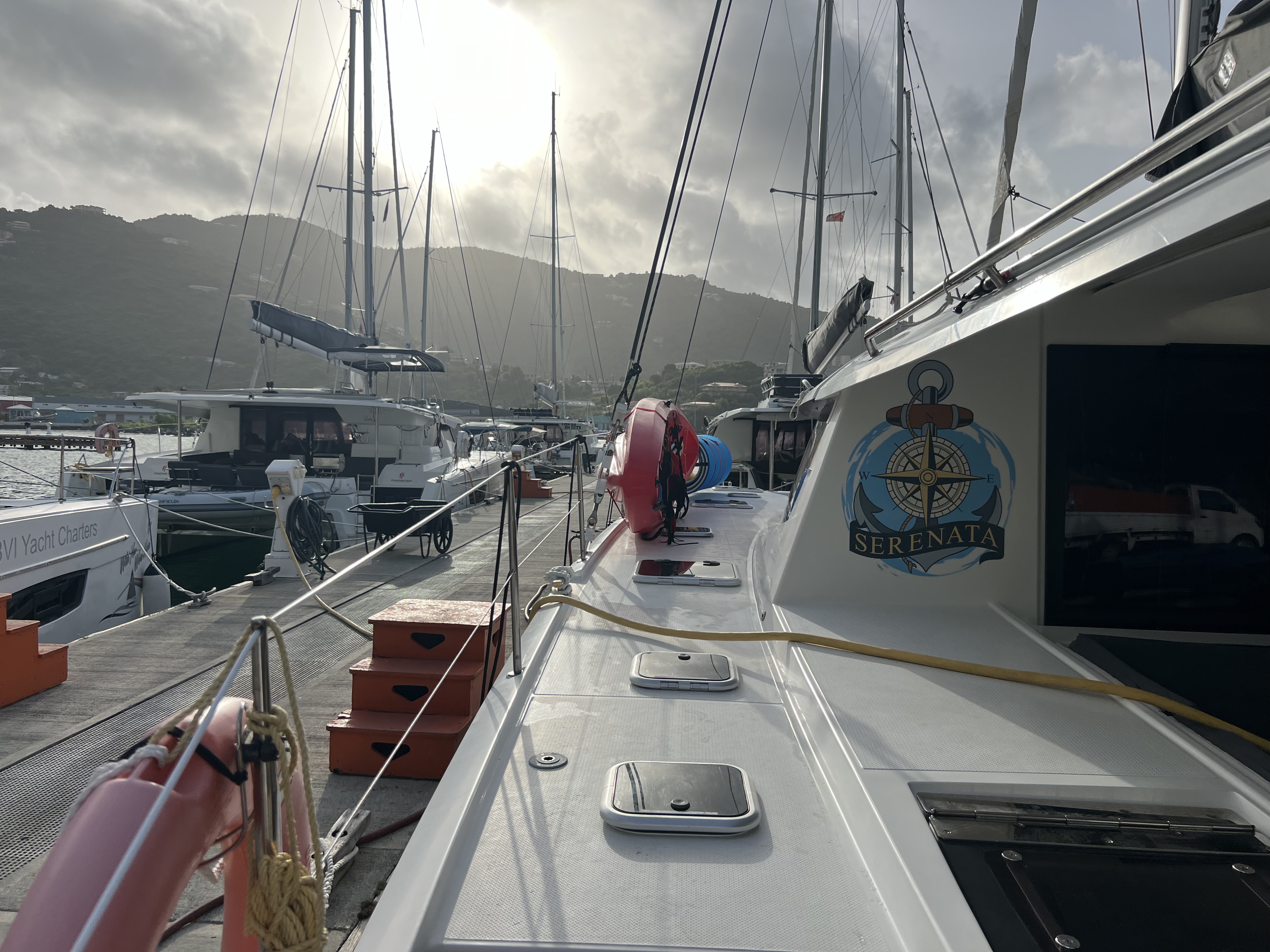 I also had terrible issues with the VHF radio that would not let me transmit; AIS was also not working. This to me was the most serious issue as I could not contact help in case of an emergency. My own personal VHF handheld radio (20+ years old) that I brought along got wet at The Baths and was rendered useless. Of all the problems that we had with this charter boat -and we had many more not mentioned here- we have to admit that the management company, BVI Yacht Charters, took care of us and came out to us literally every day to service and troubleshoot. They made up for the water-in-diesel issue at the end of the charter and again, just kept taking care of us with a smile. We also got to stay on the boat Friday night before our departure date, which settled everyone after a lot of air/taxi/ferry travel.
