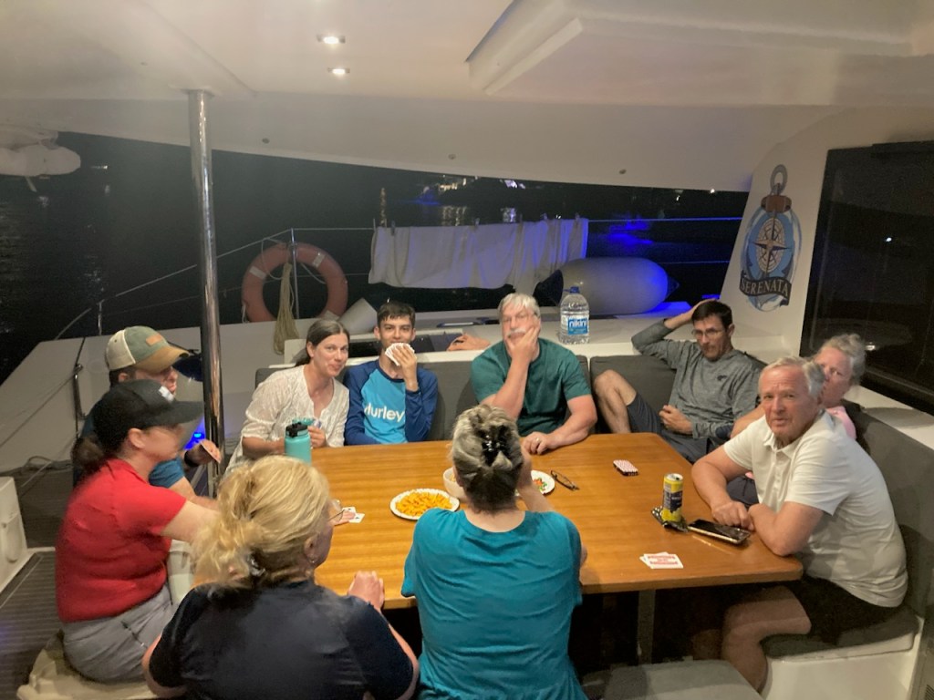 We held a Zoom call with all crew and guests a few weeks before we departed where we reviewed the boat, sleeping arrangements, roles on the boat, provisioning, planned routes and just about every other detail. I think that was a big help to those that have never sailed or been on a trip like this in the past.