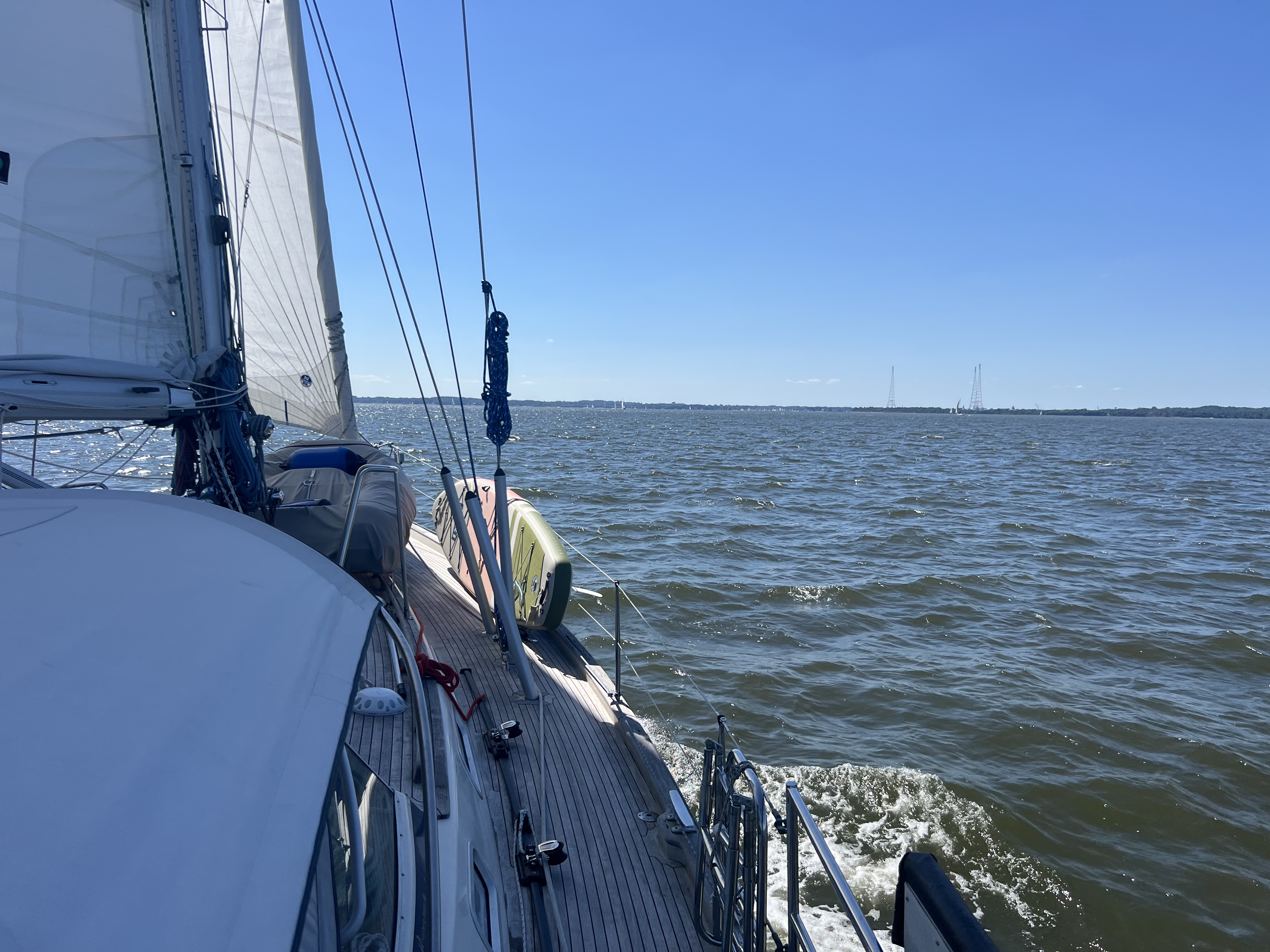 Waking up next to such a beautiful and serene landmark is truly a blessing. We were anchoring alongside our friends aboard Delfin. They have a daughter in Audrey’s school class and we have been friends since coming to Maryland. They are absolutely wonderful people. We all headed for Reed Creek which is across the Bay and up the Chester River. We took the opportunity to sail as far as possible.