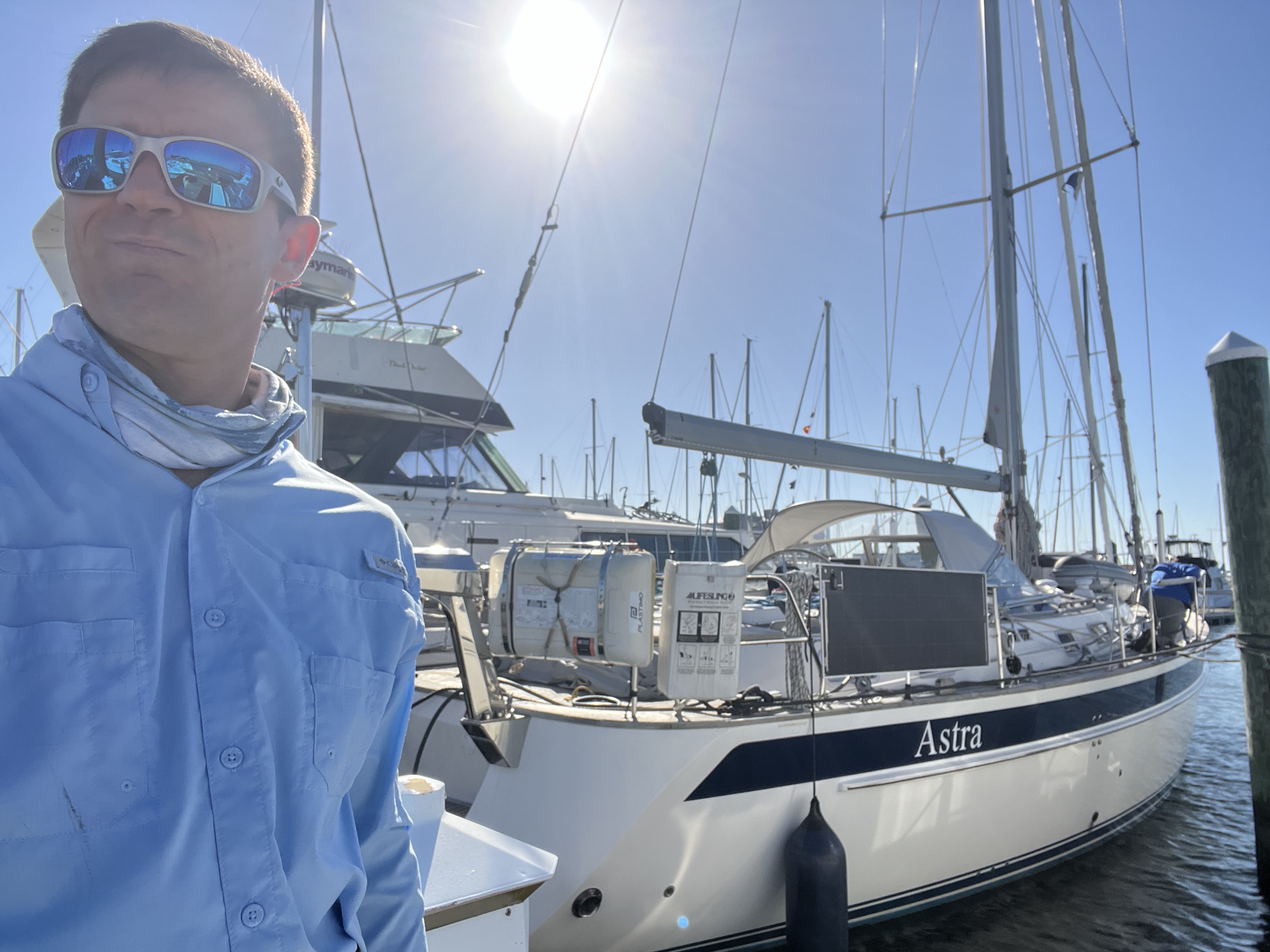 The crew of 4 was picked by the owner (Greg) via resumes and interviews. We met a few weeks before departure while the boat was parked in Annapolis. It was great to get a chance to meet everyone and to get a brief moment on the boat (Astra). Greg staged Astra at the Old Point Comfort Marina where we met up after a last minute shuffle due to a favorable weather window. Rachel shuttled me down there and dropped me off at the Salty Dawg captain’s meeting so that I could hear some of the key advice provided for weather routing.